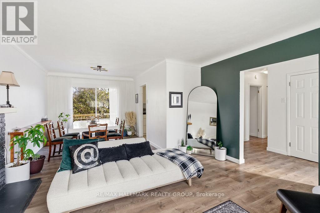 Tucked away on a quiet street, this charming bungalow sits on a large, private lot framed by mature hedges, offering exceptional space and seclusion in a prime Ottawa location. The bright main level features a welcoming living and dining area with a cozy fireplace, large front window, and patio doors leading to the spacious rear deck. Three well-sized bedrooms and a full bathroom complete the main floor, while a sunroom at the back provides access to the extra-deep garage. The finished basement expands the living space with a spacious rec room, full bathroom with glass-enclosed shower, an additional bedroom, and plenty of storage. Close to top-rated schools, shopping, and everyday amenities, this home blends comfort with convenience. Available August 1st! (id:44758)