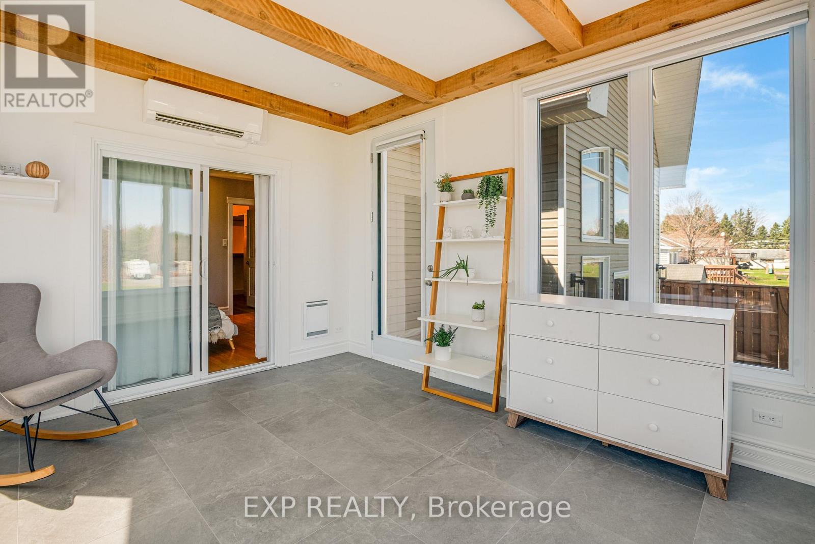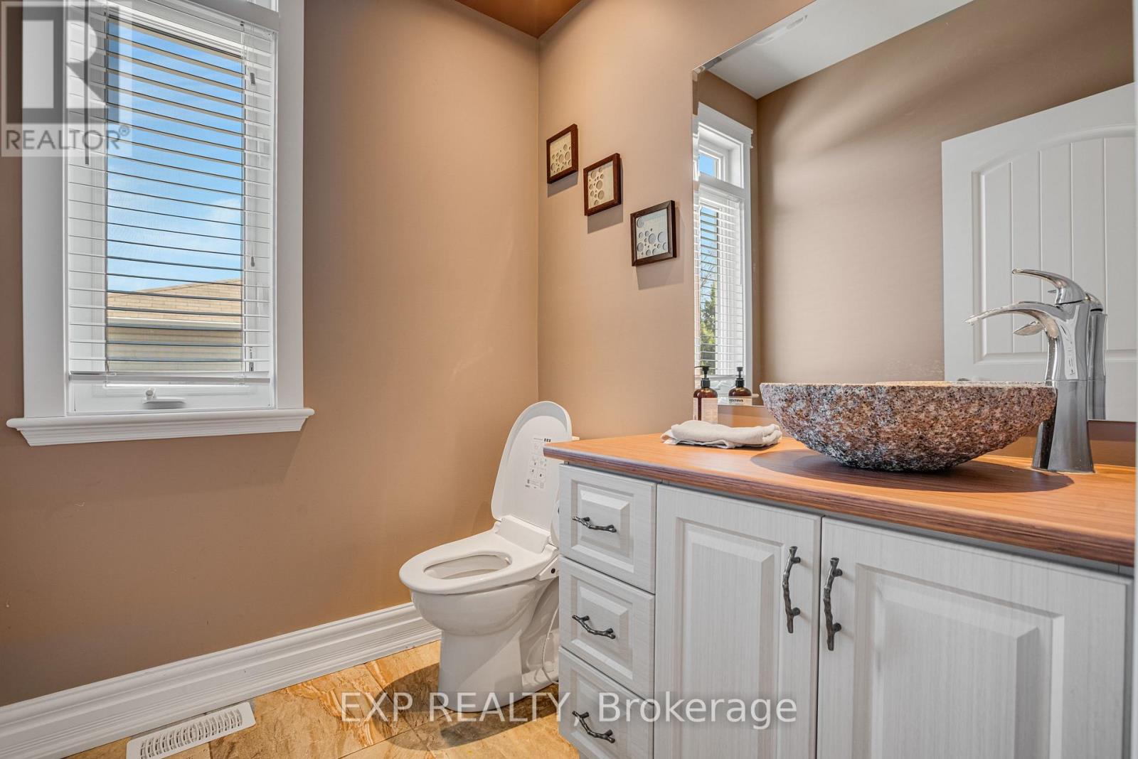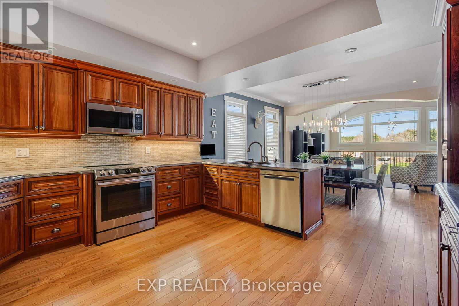 Welcome to a property that offers more than just a home-it offers space, privacy, and a lifestyle that's hard to find. Set on a uniquely deep lot just outside Limoges, this 2+2 bedroom bungalow blends the comfort of a quiet neighbourhood with the feeling of your own private retreat. Step into the backyard and the setting transforms-expansive, wooded, and filled with possibility. Private trails wind through the trees and lead to a peaceful creek, creating a rare opportunity to enjoy nature, explore, and unwind without ever leaving your property. Inside, cathedral ceilings and large rear-facing windows flood the main living area with natural light, creating a warm and inviting space that feels connected to the outdoors. The modern kitchen is both stylish and functional, featuring stainless steel appliances, a coffee bar, and a walk-in pantry-ideal for everyday living and entertaining. The primary suite is designed for comfort and relaxation, offering a walk-in closet and a spa-inspired ensuite with double sinks, a soaker tub, and a glass shower with rain head and multiple jets. Patio doors lead directly into a fully enclosed 4-season sunroom with its own heat pump-perfect for morning coffee, reading, or simply enjoying the view year-round. The finished basement adds versatility with a large family room, bar area, gas fireplace, two additional bedrooms, a full bathroom, and a dedicated workshop space. Outside, the lifestyle continues with a large deck, interlock patio, and beautifully designed firepit area, along with a hot tub and landscaped lighting-ideal for entertaining or quiet evenings under the stars. Additional features include a double car garage with radiant heating, main floor laundry, custom blinds, reverse osmosis system, and generator hookup. Only steps away from the Larose Forest, this is a rare combination of space, comfort, and connection to nature-this is the kind of property that changes how you live day to day. (id:44758)