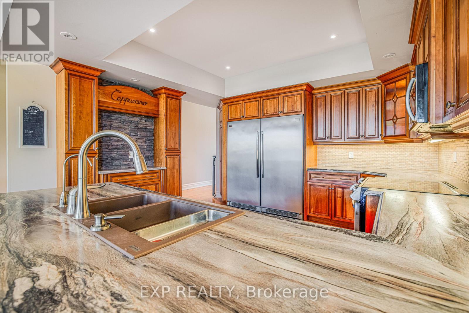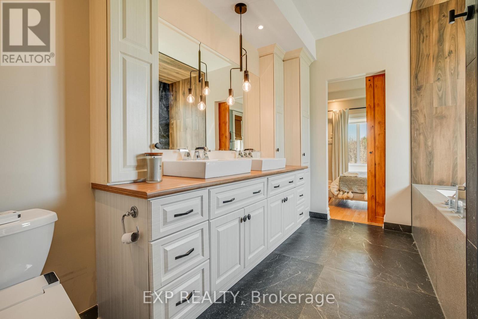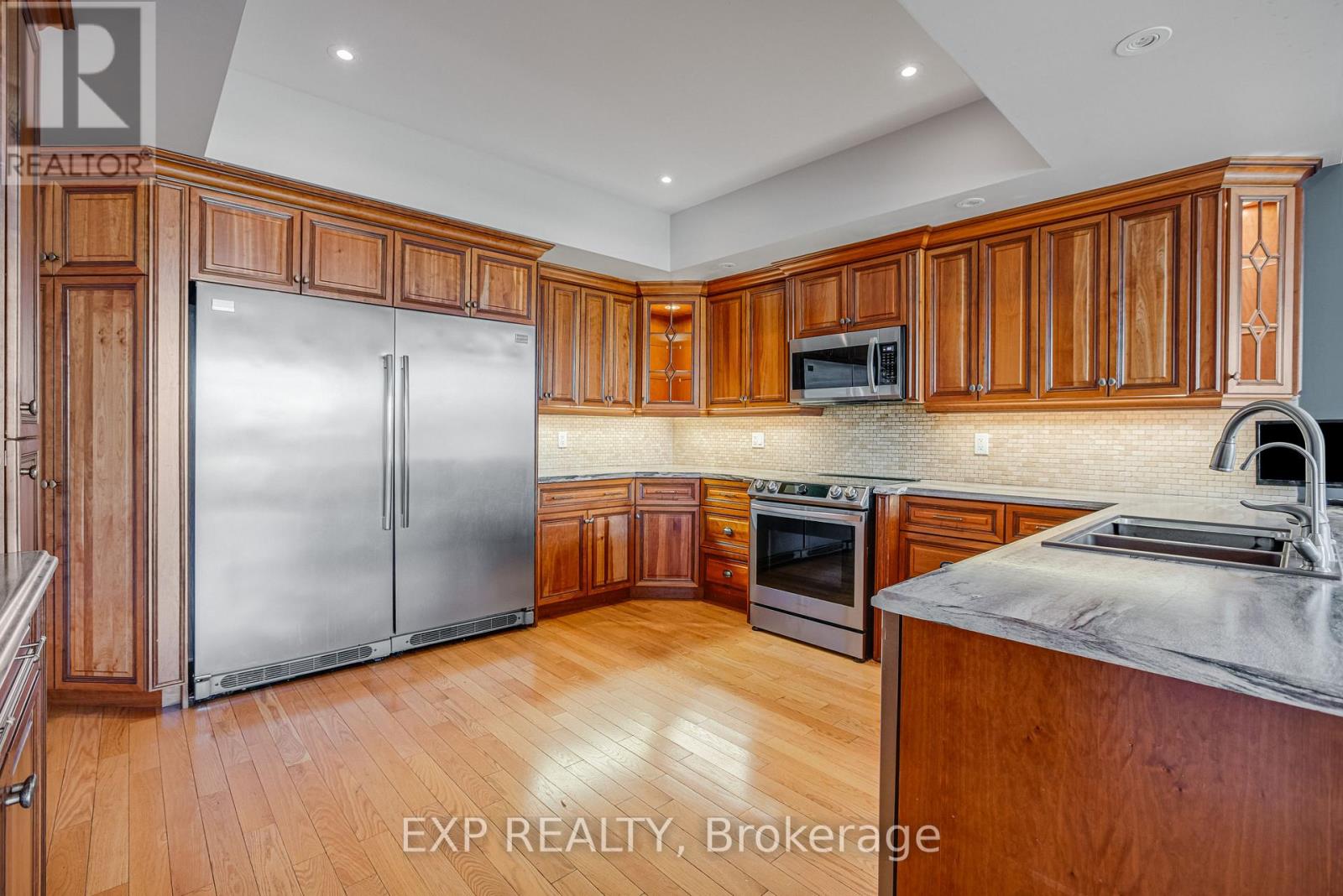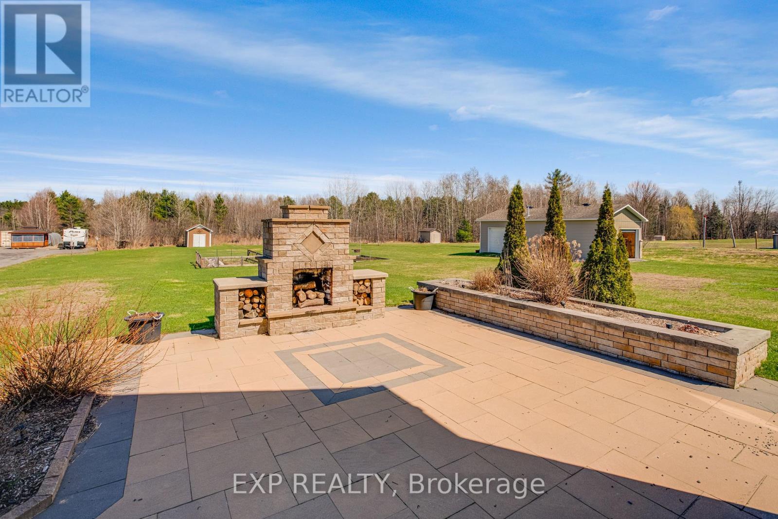 Welcome to a property that offers more than just a home-it offers space, privacy, and a lifestyle that's hard to find. Set on a uniquely deep lot just outside Limoges, this 2+2 bedroom bungalow blends the comfort of a quiet neighbourhood with the feeling of your own private retreat. Step into the backyard and the setting transforms-expansive, wooded, and filled with possibility. Private trails wind through the trees and lead to a peaceful creek, creating a rare opportunity to enjoy nature, explore, and unwind without ever leaving your property. Inside, cathedral ceilings and large rear-facing windows flood the main living area with natural light, creating a warm and inviting space that feels connected to the outdoors. The modern kitchen is both stylish and functional, featuring stainless steel appliances, a coffee bar, and a walk-in pantry-ideal for everyday living and entertaining. The primary suite is designed for comfort and relaxation, offering a walk-in closet and a spa-inspired ensuite with double sinks, a soaker tub, and a glass shower with rain head and multiple jets. Patio doors lead directly into a fully enclosed 4-season sunroom with its own heat pump-perfect for morning coffee, reading, or simply enjoying the view year-round. The finished basement adds versatility with a large family room, bar area, gas fireplace, two additional bedrooms, a full bathroom, and a dedicated workshop space. Outside, the lifestyle continues with a large deck, interlock patio, and beautifully designed firepit area, along with a hot tub and landscaped lighting-ideal for entertaining or quiet evenings under the stars. Additional features include a double car garage with radiant heating, main floor laundry, custom blinds, reverse osmosis system, and generator hookup. Only steps away from the Larose Forest, this is a rare combination of space, comfort, and connection to nature-this is the kind of property that changes how you live day to day. (id:44758)