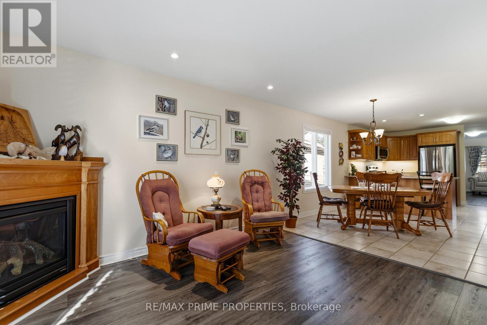 Welcome to 5 Gail Elizabeth Court, a meticulously maintained 2-bedroom bungalow offering approximately 1,325 sq. ft. of thoughtfully designed living space in a quiet residential subdivision off Tollgate Road behind the RCMP building. This custom slab-on-grade home provides comfortable one-level living with radiant heated floors throughout and a bright, inviting layout. The home features a formal living room and a spacious family room, each with its own gas fireplace, perfect for both entertaining and relaxing evenings. The open-concept kitchen and dining area create a seamless flow for everyday living. The generous primary bedroom offers oversized closets and convenient cheater-style access to the main bathroom, while the second bedroom is bright and spacious with ample storage. A charming three-season sunroom provides the perfect space to unwind and overlooks the private fenced backyard backing onto a peaceful creek with no rear neighbours. Additional features include a separate laundry/utility room, attached 1.5-car garage, paved driveway, garden shed, central vacuum, air exchanger, and two wall A/C units. Major updates include a new roof (2023) and a Generac backup generator (2024). Located in a desirable north-end neighbourhood close to parks, shopping, churches, and other amenities, this move-in ready home offers exceptional comfort, efficiency, and low-maintenance living. (id:44758)