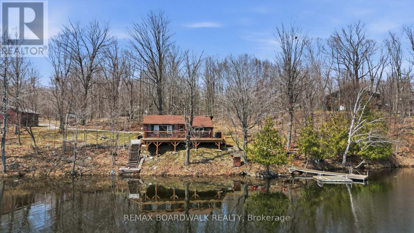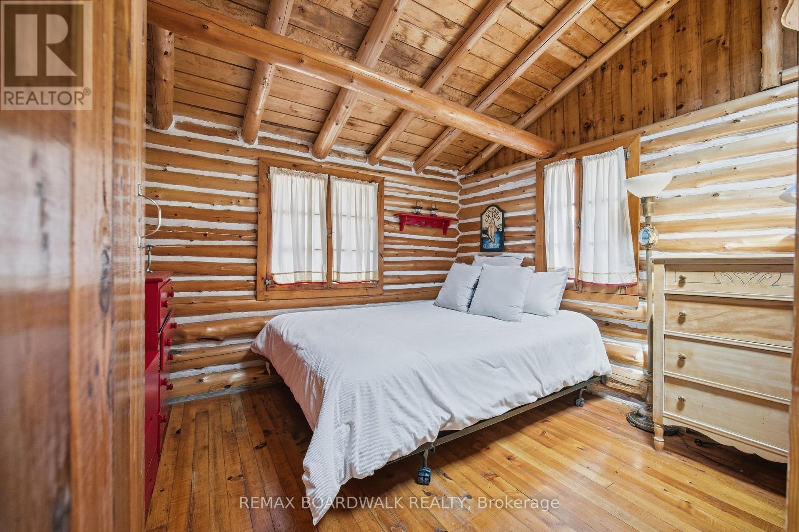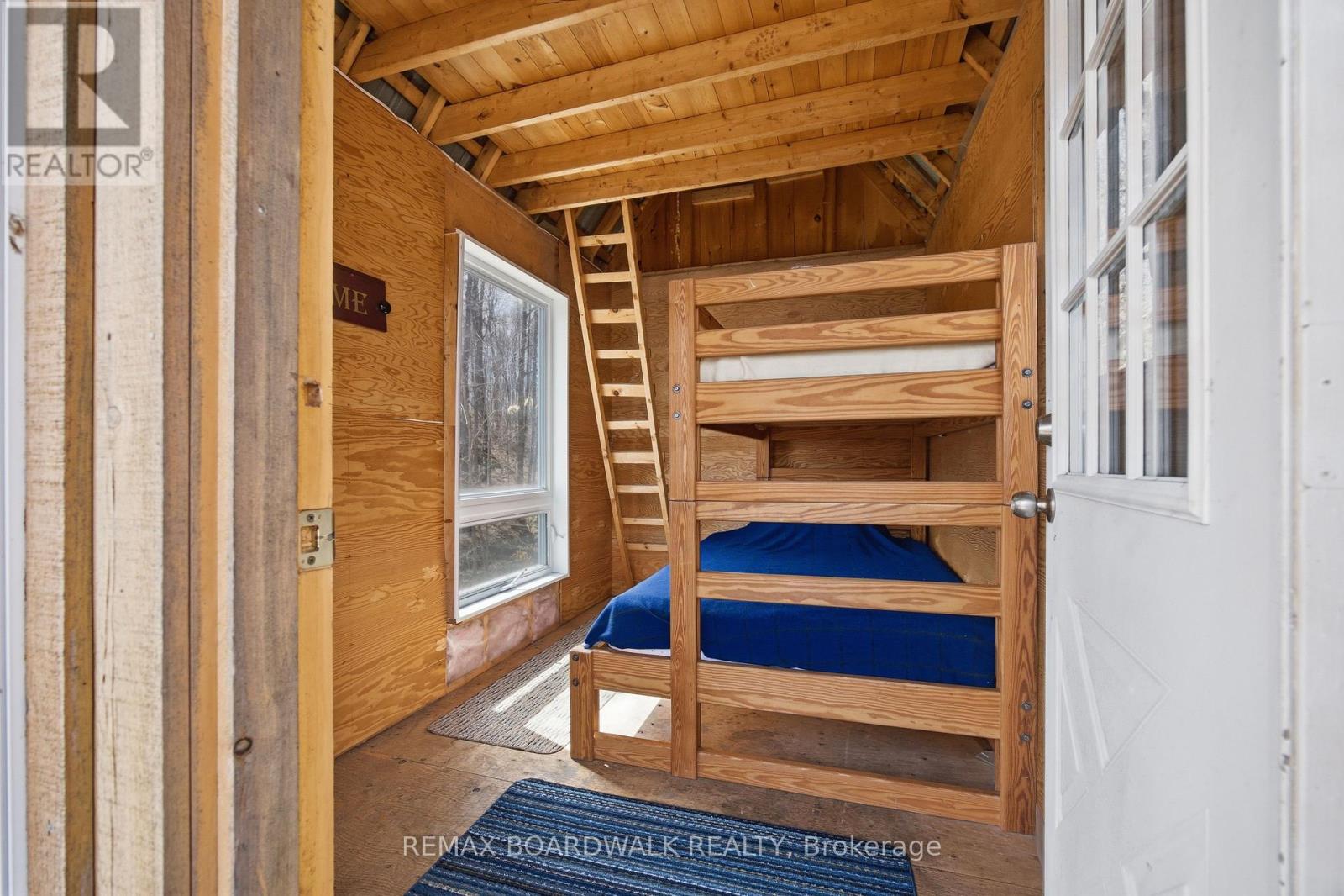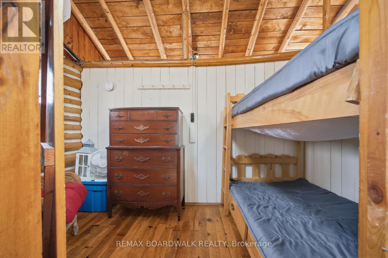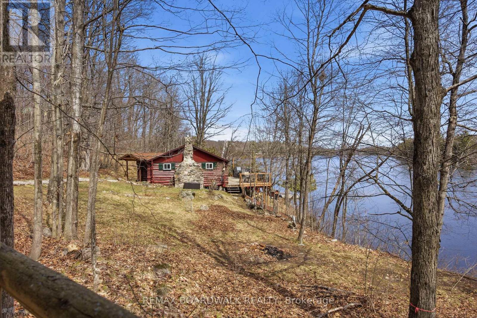 Lake life set on 10 private acres to explore and unwind. Nestled along the shores of Long Lake, this charming cottage is ready to become the backdrop for your family's lasting memories. With over 700 feet of waterfront you are surrounded by stunning views and the ultimate peace and quiet. The Rideau Trail is nearby and a network of trails winds throughout the property-ensuring there's always something to discover. This rare offering combines sought-after waterfront living with acreage, highlighted by an absolutely adorable cottage. Featuring 3 bedrooms and 1 bathroom, the open-concept layout showcases a classic Canadian log design with original pine floors and a cozy fieldstone fireplace. A delightful bunkie with a loft is tucked among the trees, offering serene views over the lake. Perfect for gathering with family and friends, you can swim, fish or boat right from your dock, then take in sweeping bay views from the lakeside deck while barbecuing or simply relaxing. Additional features include a detached 16' x 20' garage and a storage shed-ideal for keeping all your water toys organized. Beautiful Long Lake is calling, your perfect getaway awaits. (id:44758)