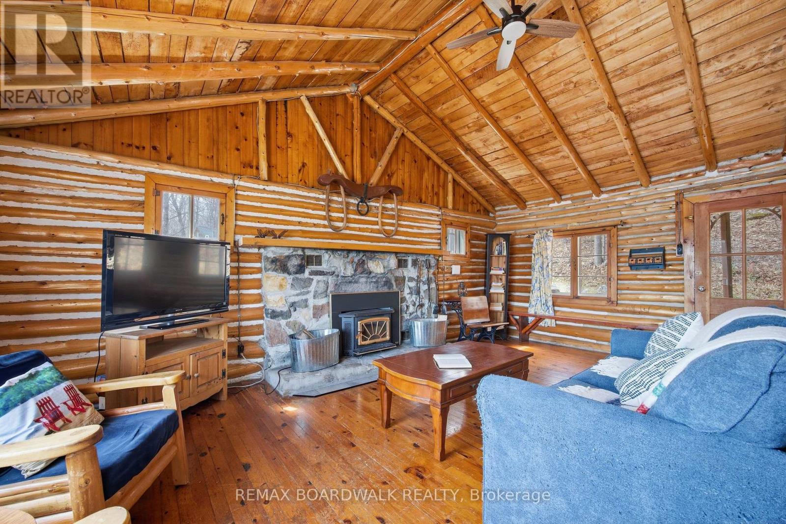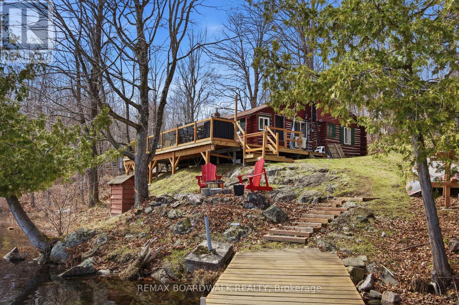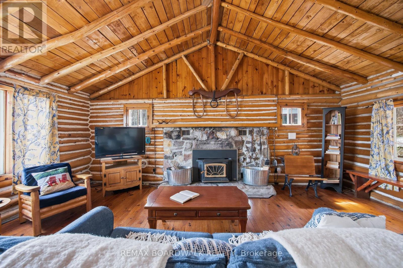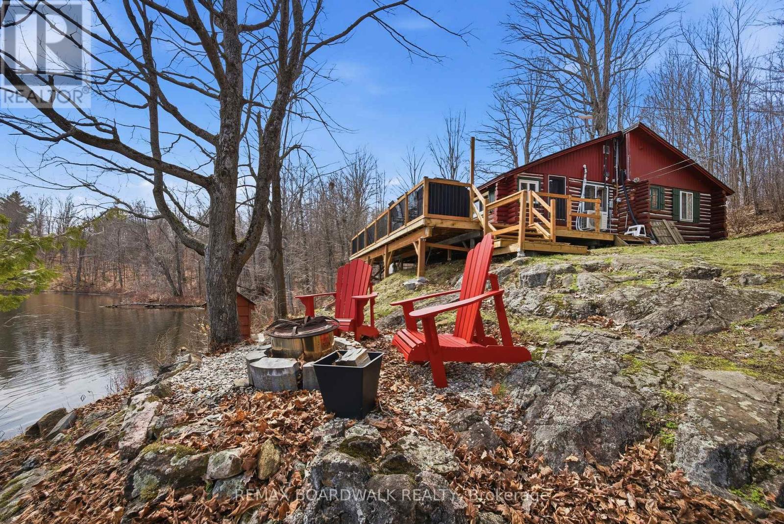 Lake life set on 10 private acres to explore and unwind. Nestled along the shores of Long Lake, this charming cottage is ready to become the backdrop for your family's lasting memories. With over 700 feet of waterfront you are surrounded by stunning views and the ultimate peace and quiet. The Rideau Trail is nearby and a network of trails winds throughout the property-ensuring there's always something to discover. This rare offering combines sought-after waterfront living with acreage, highlighted by an absolutely adorable cottage. Featuring 3 bedrooms and 1 bathroom, the open-concept layout showcases a classic Canadian log design with original pine floors and a cozy fieldstone fireplace. A delightful bunkie with a loft is tucked among the trees, offering serene views over the lake. Perfect for gathering with family and friends, you can swim, fish or boat right from your dock, then take in sweeping bay views from the lakeside deck while barbecuing or simply relaxing. Additional features include a detached 16' x 20' garage and a storage shed-ideal for keeping all your water toys organized. Beautiful Long Lake is calling, your perfect getaway awaits. (id:44758)