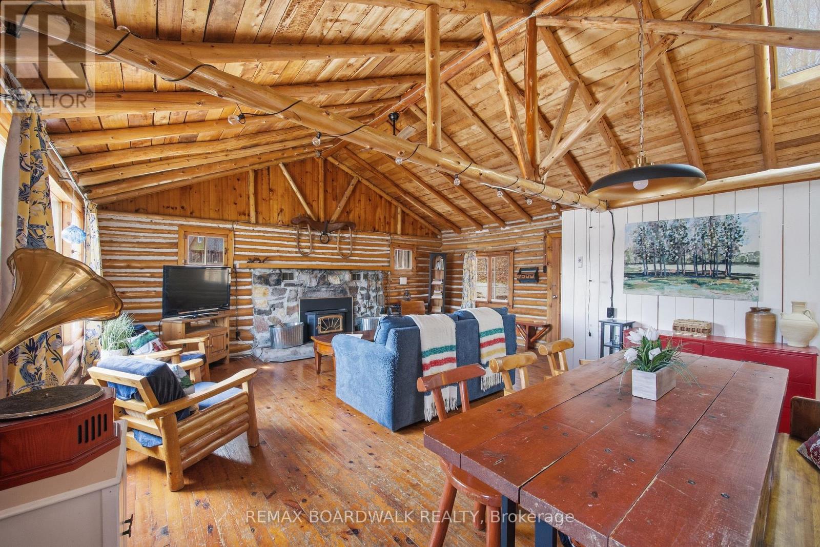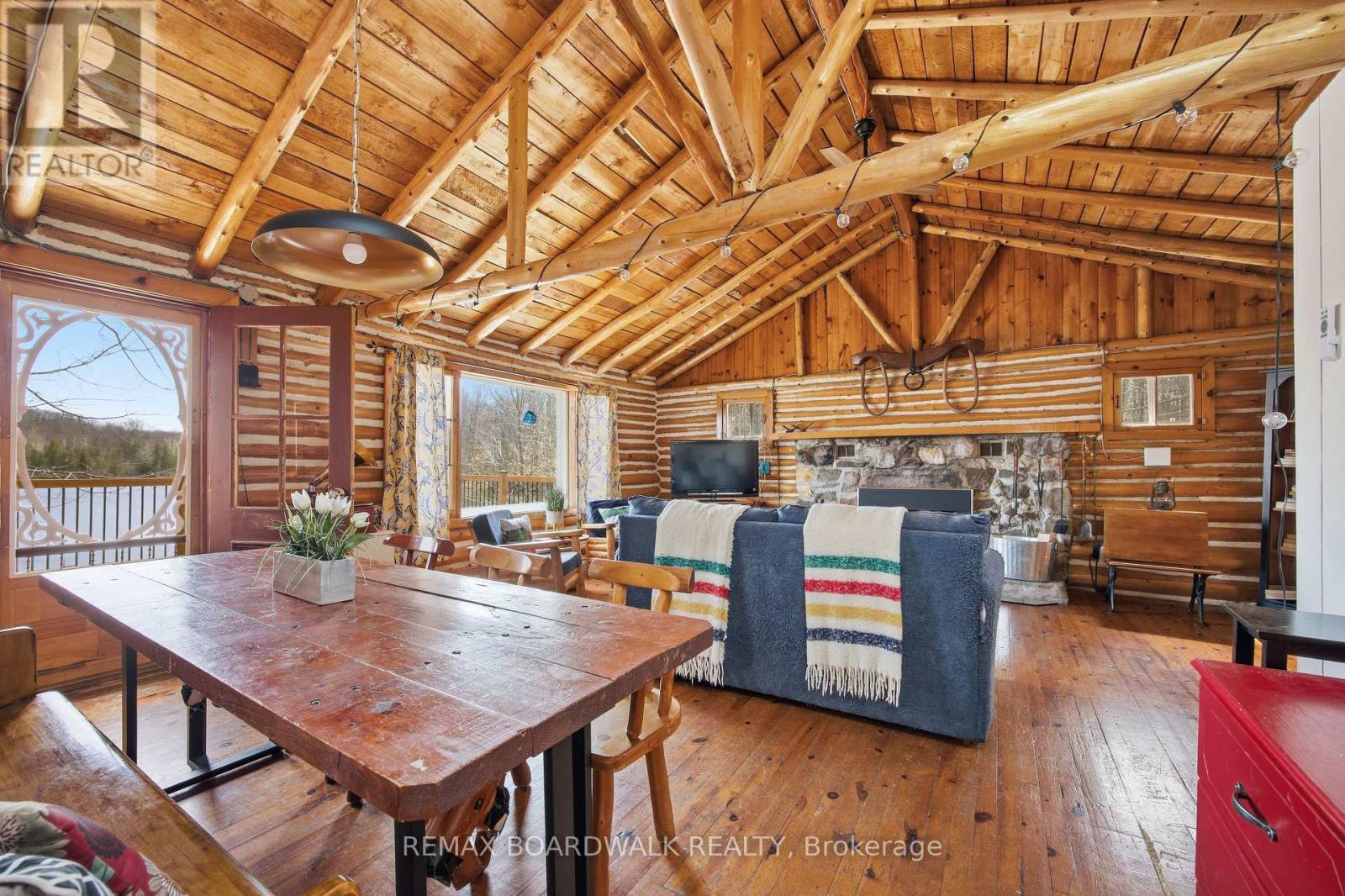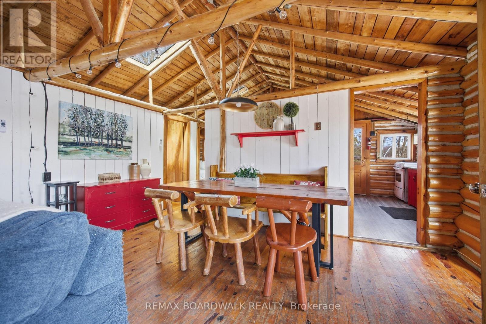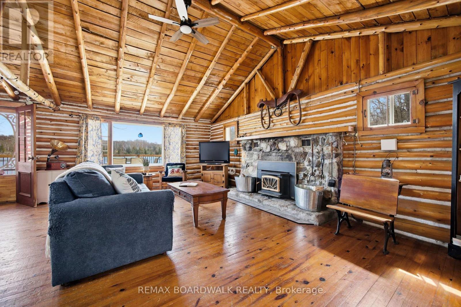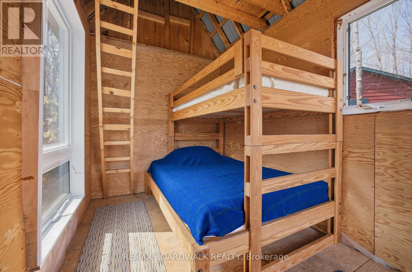 Lake life set on 10 private acres to explore and unwind. Nestled along the shores of Long Lake, this charming cottage is ready to become the backdrop for your family's lasting memories. With over 700 feet of waterfront you are surrounded by stunning views and the ultimate peace and quiet. The Rideau Trail is nearby and a network of trails winds throughout the property-ensuring there's always something to discover. This rare offering combines sought-after waterfront living with acreage, highlighted by an absolutely adorable cottage. Featuring 3 bedrooms and 1 bathroom, the open-concept layout showcases a classic Canadian log design with original pine floors and a cozy fieldstone fireplace. A delightful bunkie with a loft is tucked among the trees, offering serene views over the lake. Perfect for gathering with family and friends, you can swim, fish or boat right from your dock, then take in sweeping bay views from the lakeside deck while barbecuing or simply relaxing. Additional features include a detached 16' x 20' garage and a storage shed-ideal for keeping all your water toys organized. Beautiful Long Lake is calling, your perfect getaway awaits. (id:44758)