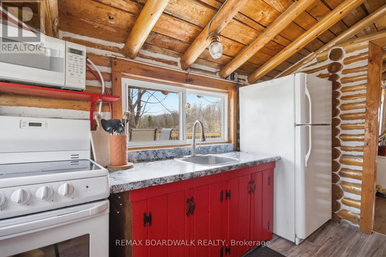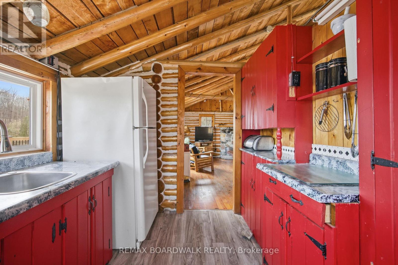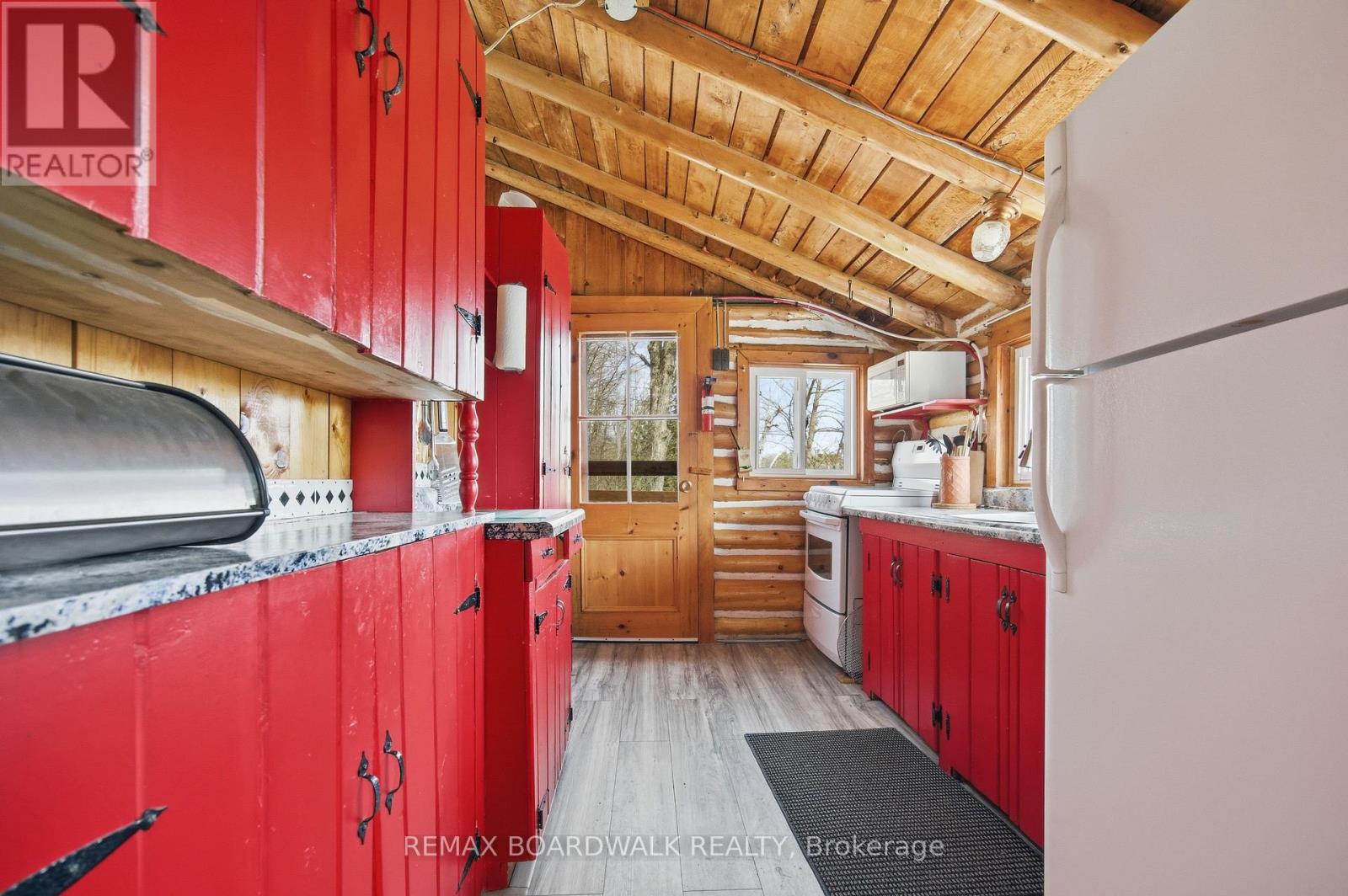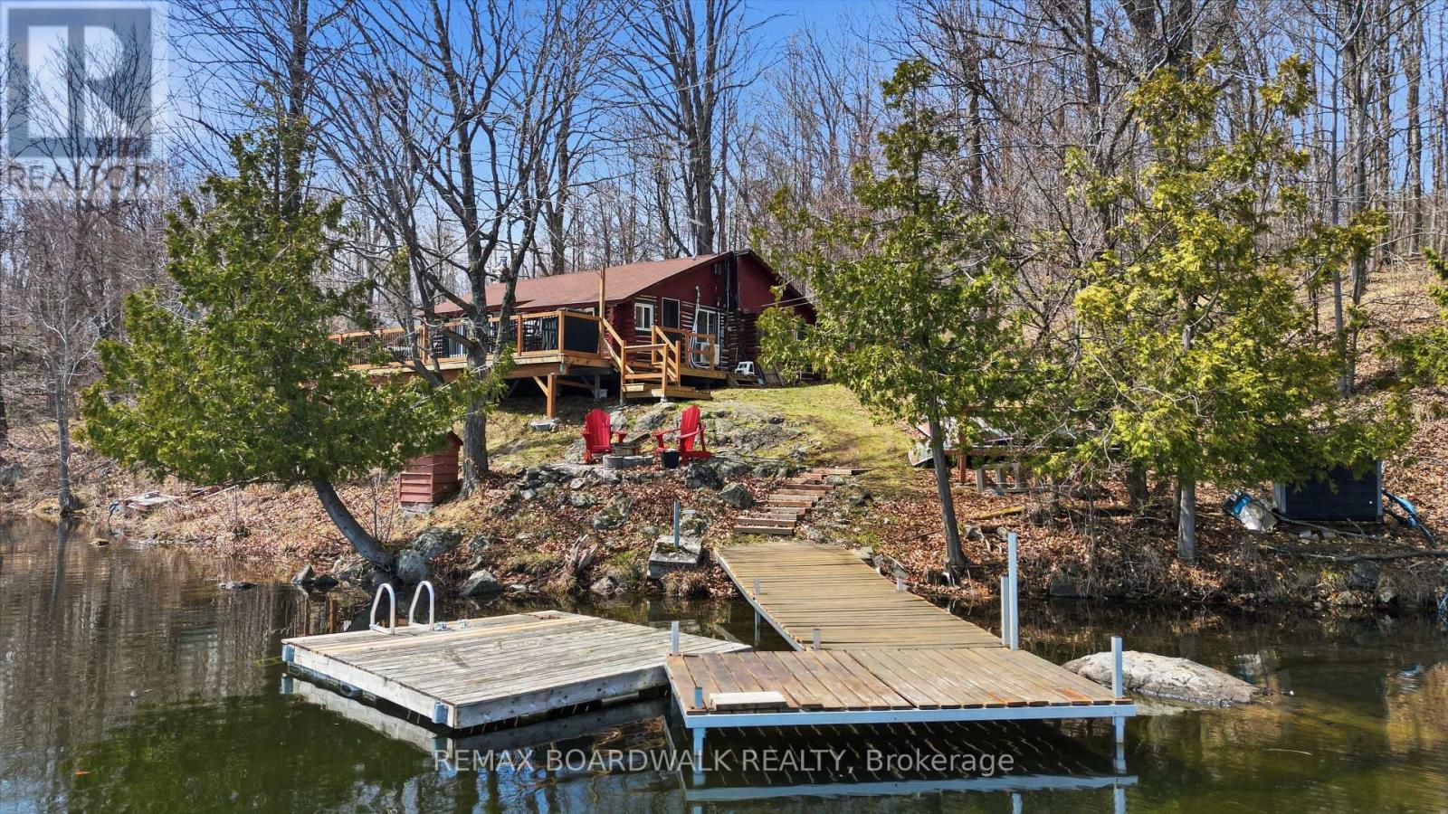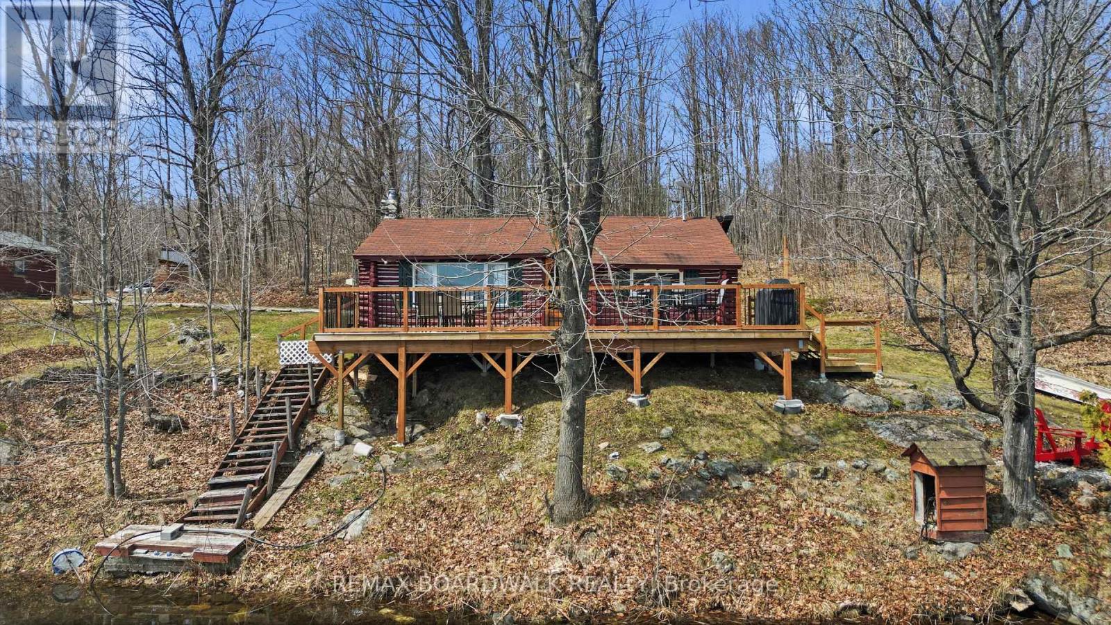 Lake life set on 10 private acres to explore and unwind. Nestled along the shores of Long Lake, this charming cottage is ready to become the backdrop for your family's lasting memories. With over 700 feet of waterfront you are surrounded by stunning views and the ultimate peace and quiet. The Rideau Trail is nearby and a network of trails winds throughout the property-ensuring there's always something to discover. This rare offering combines sought-after waterfront living with acreage, highlighted by an absolutely adorable cottage. Featuring 3 bedrooms and 1 bathroom, the open-concept layout showcases a classic Canadian log design with original pine floors and a cozy fieldstone fireplace. A delightful bunkie with a loft is tucked among the trees, offering serene views over the lake. Perfect for gathering with family and friends, you can swim, fish or boat right from your dock, then take in sweeping bay views from the lakeside deck while barbecuing or simply relaxing. Additional features include a detached 16' x 20' garage and a storage shed-ideal for keeping all your water toys organized. Beautiful Long Lake is calling, your perfect getaway awaits. (id:44758)