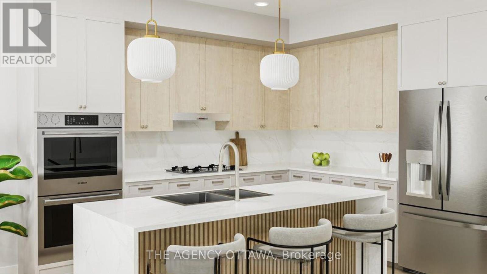 Experience riverside living at The Docks, a thoughtfully planned community designed for those seeking comfort, style, and connection to nature within the heart of the city. This well-designed 3-bedroom townhome offers 1,664 sq. ft. of modern living space with a private backyard, single-car garage, and additional laneway parking.The main floor features an open-concept layout with hardwood flooring throughout and a contemporary kitchen complete with a 60" x 36" island, Silestone countertops, and modern cabinetry. Upstairs, all three bedrooms feature vaulted ceilings. The primary suite includes a private balcony and ensuite bathroom, while second-floor laundry adds everyday convenience.Steps to Mooney's Bay Beach, Carleton University, Hogs Back Park, and transit routes to downtown Ottawa. (id:44758)