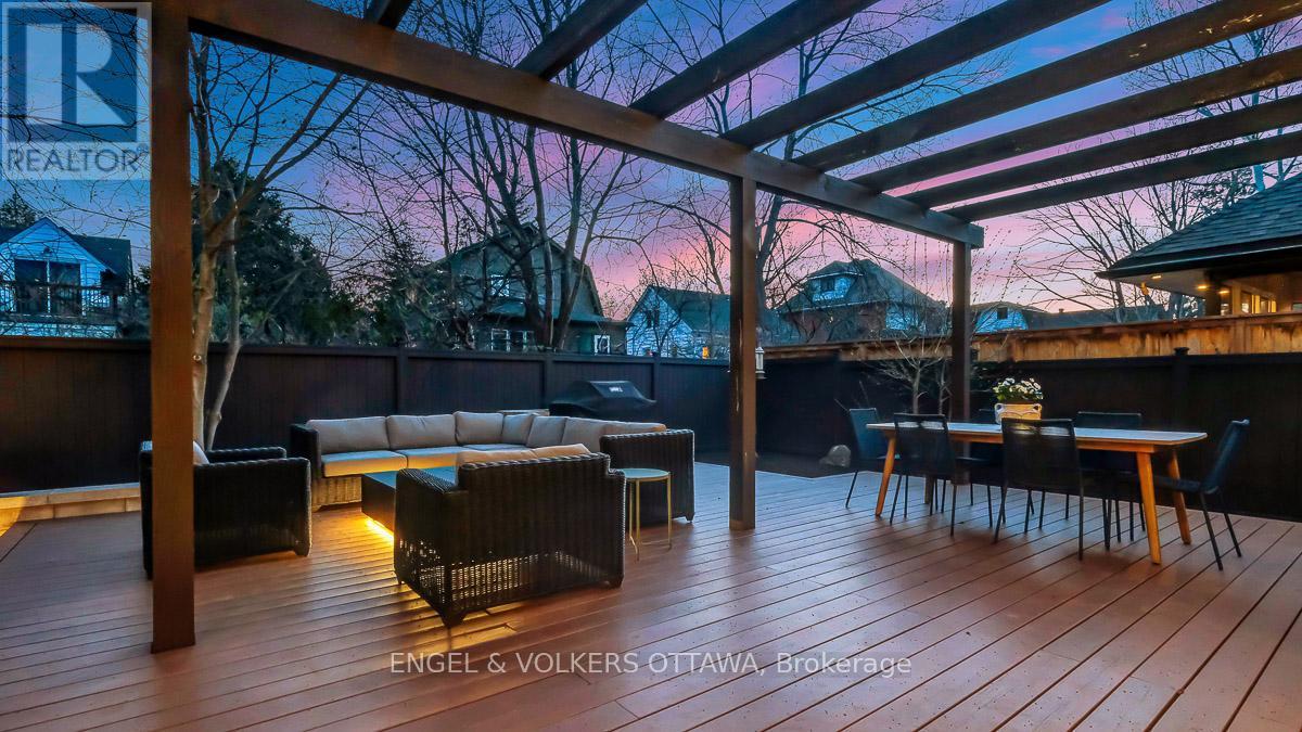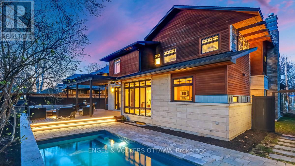 Situated on a quiet street just steps from Westboro, 592 Brierwood Avenue offers exceptional space, privacy, and lifestyle on a rare corner lot with only one direct neighbour. The fully fenced backyard is a true retreat, with mature trees along the rear fence providing a lot of privacy. A newly completed (2024) pool, stone landscaping, decking, and pool hut-designed for both entertaining and everyday enjoyment make the back yard an oasis. Inside, the home is bright and expansive, with high ceilings and large windows throughout. The upper level captures beautiful treetop views, while a private balcony off the office adds a unique outdoor workspace. Two dedicated offices- one featuring custom built-ins and one surrounded by glass- provide ideal flexibility for remote work. All principal rooms and bedrooms are generously sized. This home provides ample storage; a walk-in pantry, custom built-ins in the dining room and primary bedroom, and a double garage. The finished lower level offers space for a gym, additional bedroom, recreation area, and includes a bathroom rough-in. Multiple outdoor access points, including French doors from the family room and a walkout from the kitchen, lead to a spacious deck with defined areas for dining, lounging, and entertaining. An inviting yet sophisticated front porch serves as a distinguished introduction to the home, blending unique design elements with exceptional curb appeal. Additional features include a spectacular wine room, second-floor laundry, new furnace (2025), and hot water tank (2022). Located just minutes from top schools, Dovercourt, Altea, and all that Westboro has to offer, this is a unique home that seamlessly blends comfort, function, and location. (id:44758)
