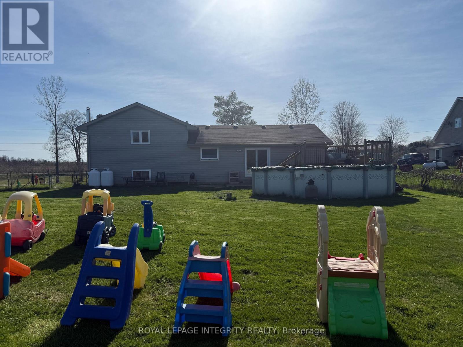 Welcome to your private retreat in Quinte West, where comfort meets country charm on a beautiful one-acre lot. Ideally located just 9 minutes to Brighton and 12 minutes to Trenton, you'll enjoy the perfect balance of peaceful living with easy access to shopping, dining, and everyday amenities. Nestled near a quiet cul-de-sac, this property offers a serene setting away from traffic and city noise. Step inside to a well-designed home featuring 3+1 bedrooms and 2 full bathrooms, ideal for families of all sizes. The main level offers a functional layout with convenient main floor laundry and a stylish black-and-white kitchen complete with abundant cabinetry and in-floor heating that extends into the dining area-perfect for added comfort year-round. The fully finished basement expands your living space with an additional bedroom and a cozy family room featuring a fireplace, ideal for relaxing evenings or hosting guests. Outdoors, the fully fenced backyard is ready for entertaining, complete with an above-ground pool and plenty of space to enjoy summer days. The home is thoughtfully updated with key improvements, including new windows and doors (2025), a water softener (2022), owned hot water tank (2022), newer sump pump, and a septic system pumped in March 2025. Heating is powered by propane, with two newer tanks installed in 2023, and a WETT-certified woodstove freshly serviced in October 2025 adds both charm and efficiency. The built-in garage is a standout feature-heated, equipped with its own electrical panel, and wired with a 240V outlet, making it ideal for hobbyists or trades. This property offers space, functionality, and modern upgrades in a peaceful setting-ready to welcome you home. (id:44758)