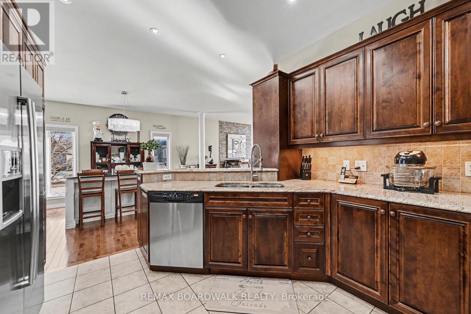 Immaculate Bungalow on a Corner Lot in the Heart of Casselman! Welcome to this beautifully maintained and move-in-ready bungalow offering style, comfort, and exceptional living space. Perfectly situated on a desirable corner lot in a quiet Casselman neighbourhood, this stunning home delivers impressive curb appeal with its elegant stone façade and double garage. Step inside to a bright and inviting foyer that opens into a sun-filled main floor designed for both comfort and entertaining. The spacious living and dining areas feature rich hardwood floors, large windows, and a warm, welcoming atmosphere. The open-concept layout flows seamlessly into the well-appointed kitchen showcasing beautiful cabinetry, granite countertops, and ample workspace for everyday living and hosting. The main level offers two generous bedrooms, including a spacious primary retreat complete with a luxurious ensuite featuring a relaxing soaker tub. A convenient powder room adds extra functionality for guests. The fully finished lower level expands your living space dramatically, offering a large family/recreation room perfect for movie nights, entertaining, or relaxing. This level also features an additional bedroom and full bathroom, providing excellent flexibility for guests, teenagers, or a home office. Step outside to enjoy the private fenced backyard, complete with a large deck and gazebo area-an ideal setting for summer gatherings, BBQs, or simply relaxing outdoors. This immaculate property combines elegant finishes, thoughtful design, and incredible living space, making it a perfect place to call home. A rare opportunity you won't want to miss! (id:44758)