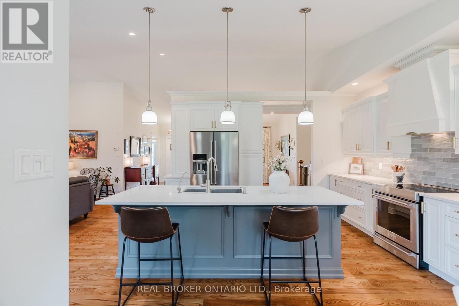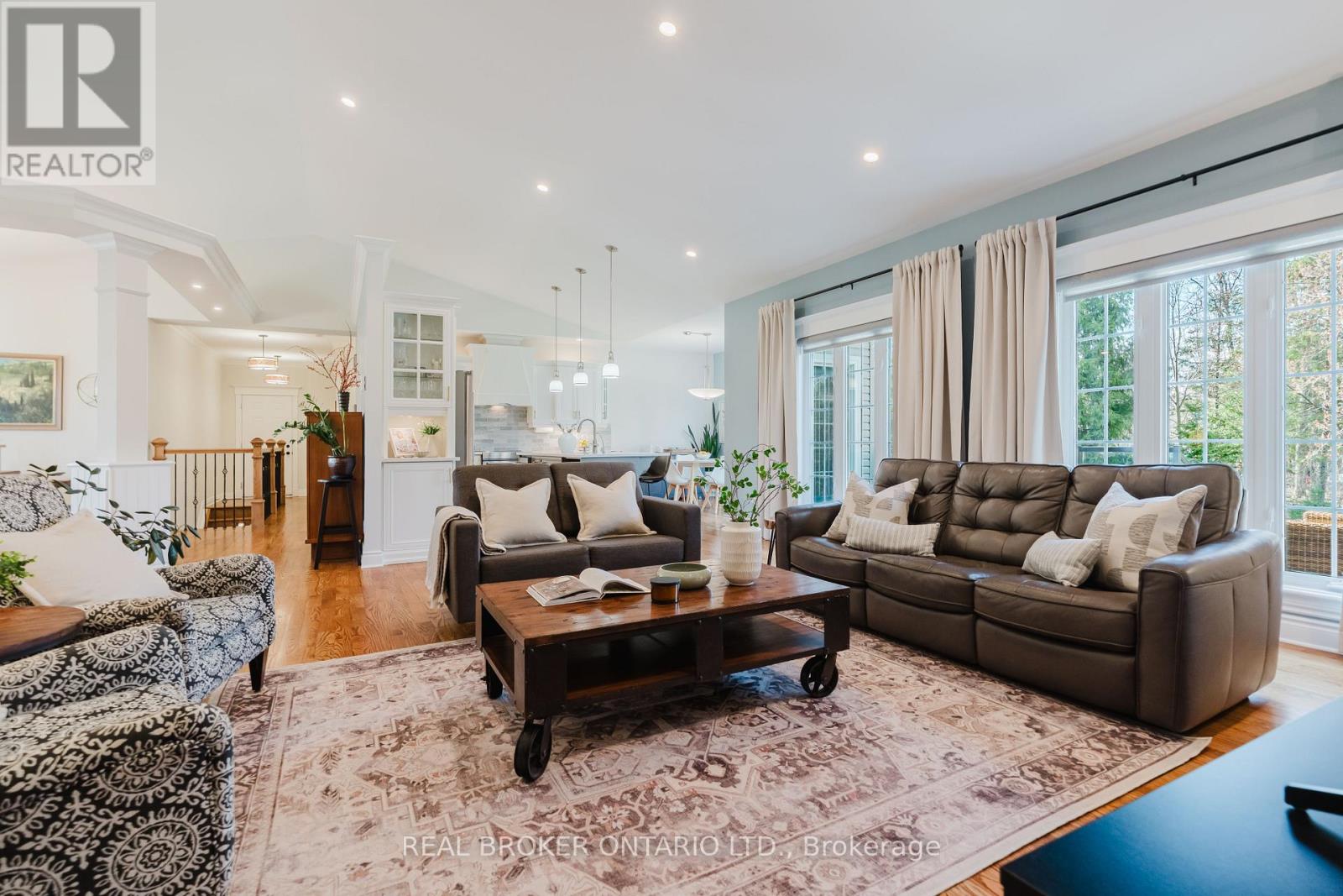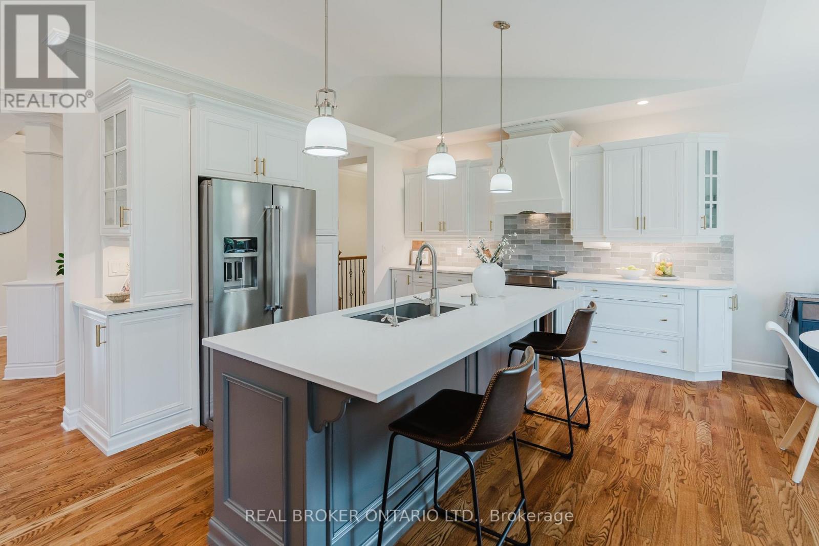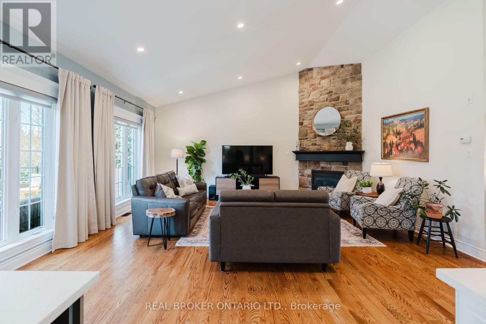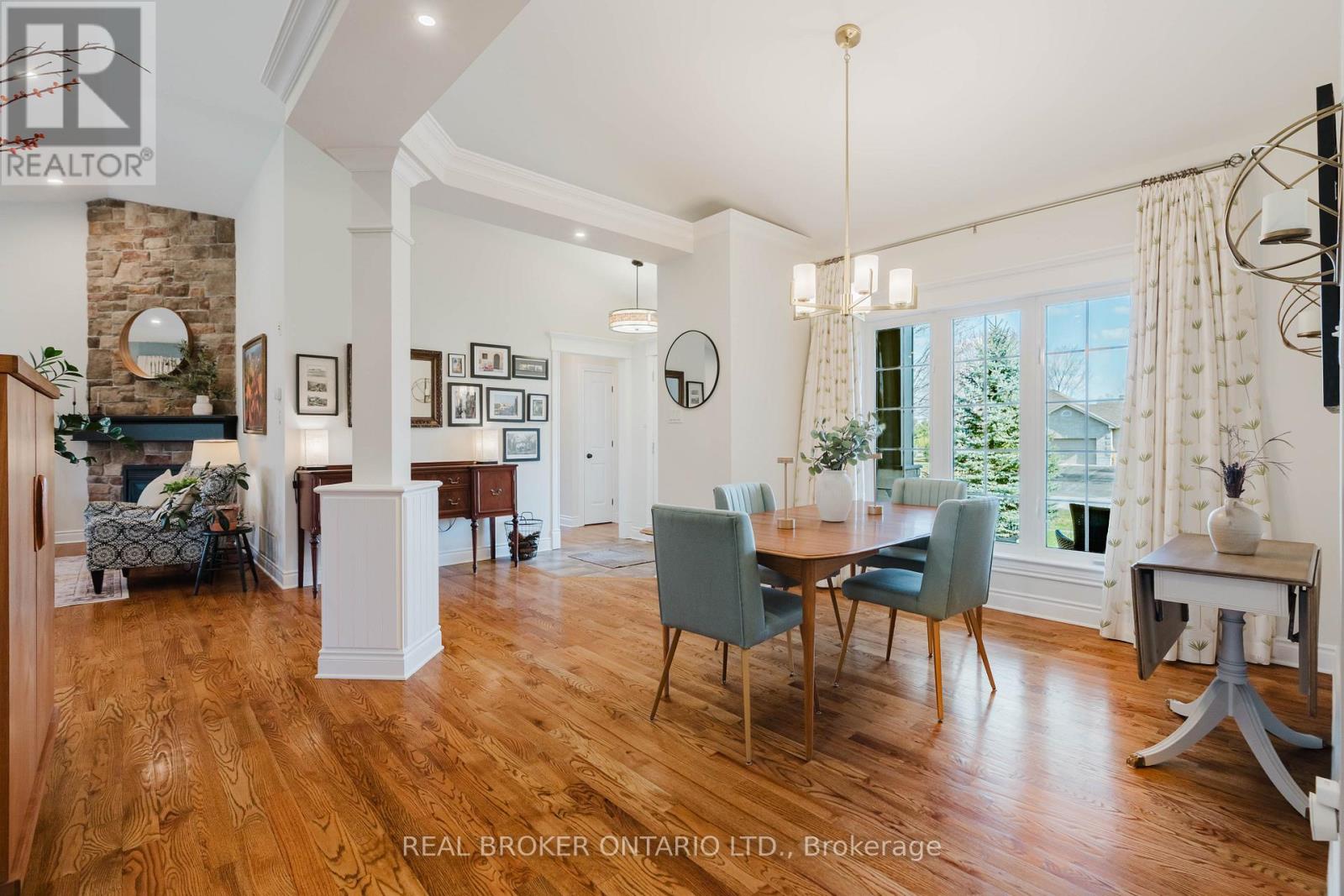 Set on a landscaped half-acre lot in Greely, this approx. 2,050 sq.ft. bungalow offers space, privacy, and nearly $100,000 in recent updates. From the long paved driveway to the updated interlock walkway and covered porch, the home makes a great first impression. Inside, the main living area is bright and open with gleaming hardwood floors and a vaulted ceiling reaching over 12 feet, anchored by a gas fireplace with a dramatic floor-to-ceiling stone surround. The updated kitchen is tastefully designed with quartz countertops, quality cabinetry, stainless steel appliances, and an island overlooking the private backyard. The floorplan is thoughtful with secondary bedrooms and a full bath on one side, and a separate primary suite with walk-in closet and 5-piece ensuite on the other. Main floor laundry and direct garage access add everyday convenience, while details like mouldings, vaulted and tray ceilings add elegance to the space. The finished basement offers expanded, flexible living space including a large rec room with gas fireplace, a 3-piece bath and extensive storage. Not to mention a workshop space with a dedicated pony-panel and 200amp electrical service to fit the needs of your inner hobbyist. Outside the yard is meant to be enjoyed with a spacious entertainment-sized deck with glass railings and a fire pit, and plenty of grass for the kids and dog, while the mature trees provide a sense of privacy. A well-rounded home in one of Ottawa's premier estate communities, within 30 minutes of downtown Ottawa and 15 minutes of the Ottawa International Airport. You're also within 10 minutes of the Hard Rock Casino and the Bowesville O-Train LRT if heading into town and wanting to go car-free! (id:44758)