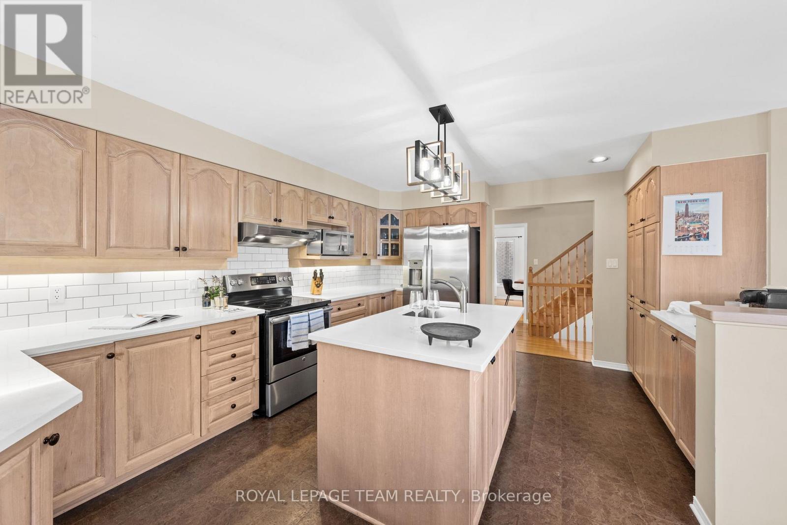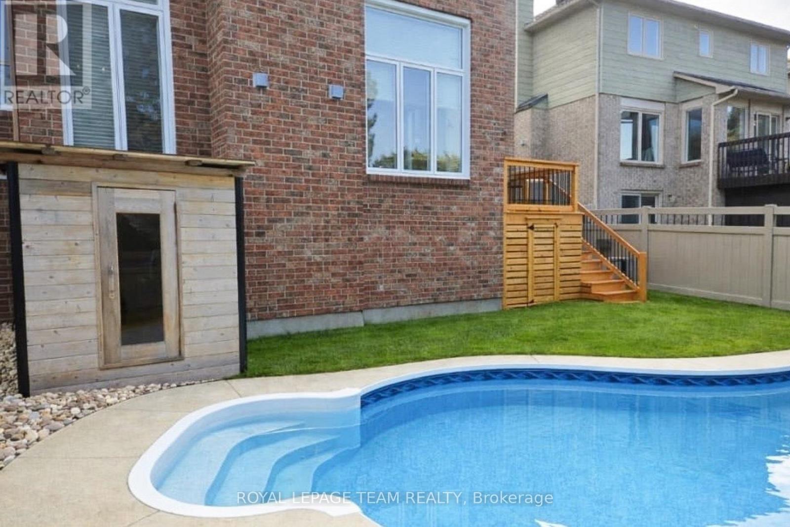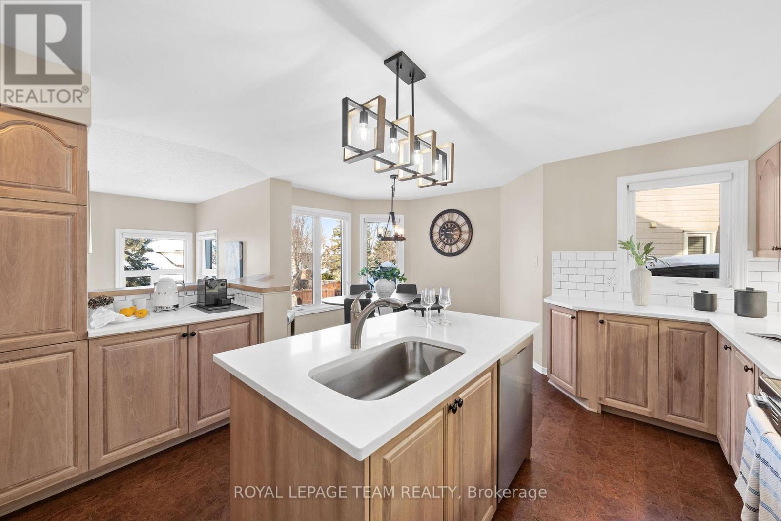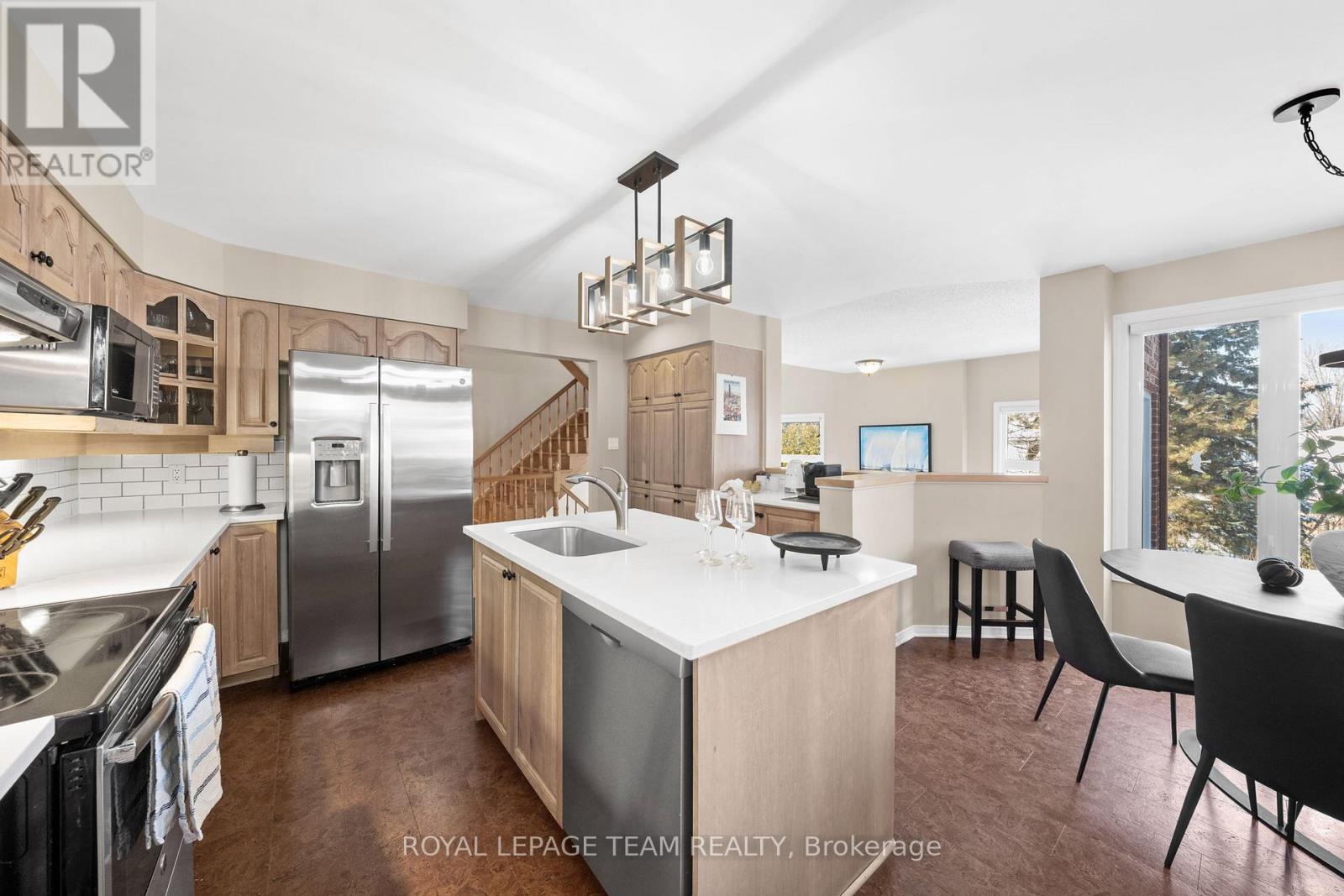 Open House on Sun March 8, 2-4 PM. Located in the heart of Kanata Lakes, this all-brick Holitzner built walkout home offers approx. 3,790 sq. ft. of finished living space in a quiet, family-friendly neighbourhood close to top schools, amenities, Kanata Tech Park, and National Defence HQ. An interlock walkway leads to a beautiful front entry, opening into a bright 2-storey foyer. The living room with wood-burning FP provides a welcoming space to entertain, while double doors lead to a spacious formal dining room overlooking the backyard. The updated kitchen (2021) features cork floors, quartz counters and island, SS appliances including a GE fridge (2025), Bosch dishwasher (2025), subway tile backsplash, abundant cabinetry and pantry storage, plus a bright breakfast area and coffee nook overlooking the family room. Also on the main level is an updated powder room with quartz counters and black fixtures, a stately office with built-ins, crown moulding and a gas fireplace, and a laundry room with cabinetry and LG washer and dryer (2021). The impressive 2-storey family room features soaring ceilings, wood-burning FP and sliding doors that lead to the deck. Upstairs, the expansive primary suite includes a WIC and spa-inspired ensuite w/ double sinks, quartz counters, jetted tub and separate shower. A full bath with double vanity and tub/shower combo serves this level, along with 3 additional bdrms, one featuring wainscoting and new carpet (2022). Finished walkout LL offers a rec room with built-ins and heated floors, theatre room, storage areas, 5th bdrm, and full bath w/heated floors, perfect for an in-law or guest suite. Backyard oasis is an entertainer's dream featuring beautiful landscaping, heated inground saltwater pool, deck with underneath storage, 2nd deck ideal for a hot tub or patio furniture, and a fully fenced yard. Windows and doors updated 2018/2019. Solar panels installed 2025. A must-see home in Kanata Lakes! 24 Hours Irrevocable on all offers preferred. (id:44758)