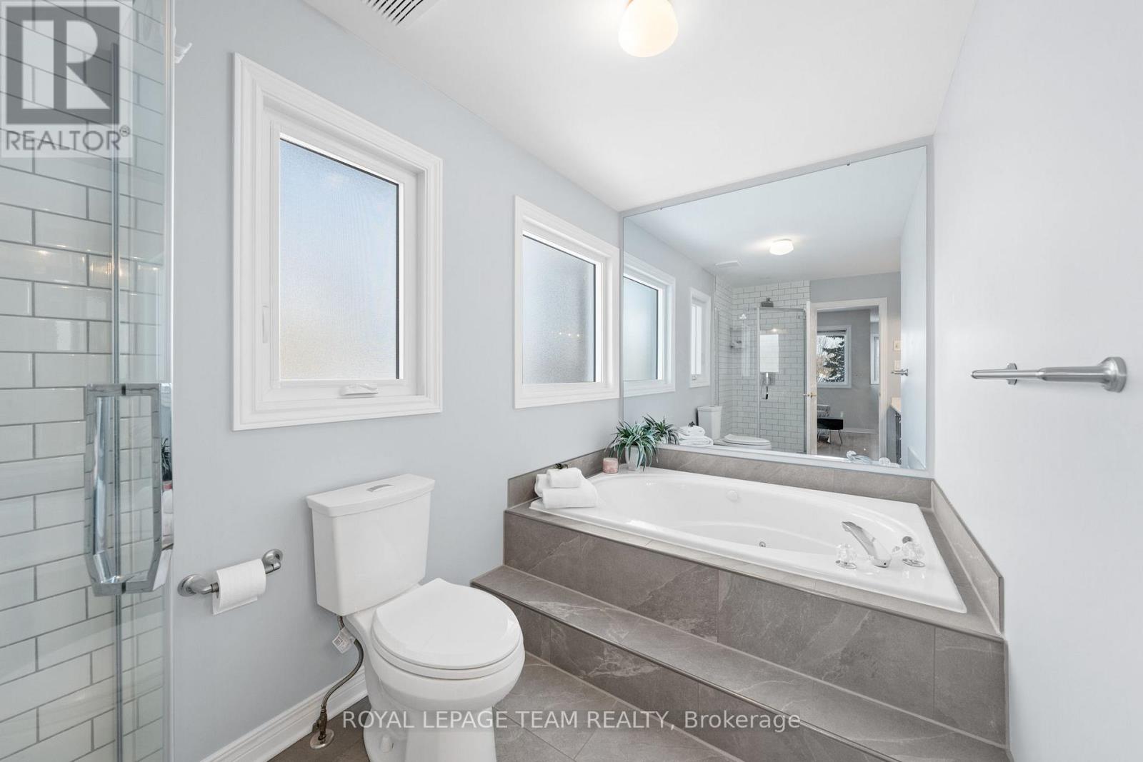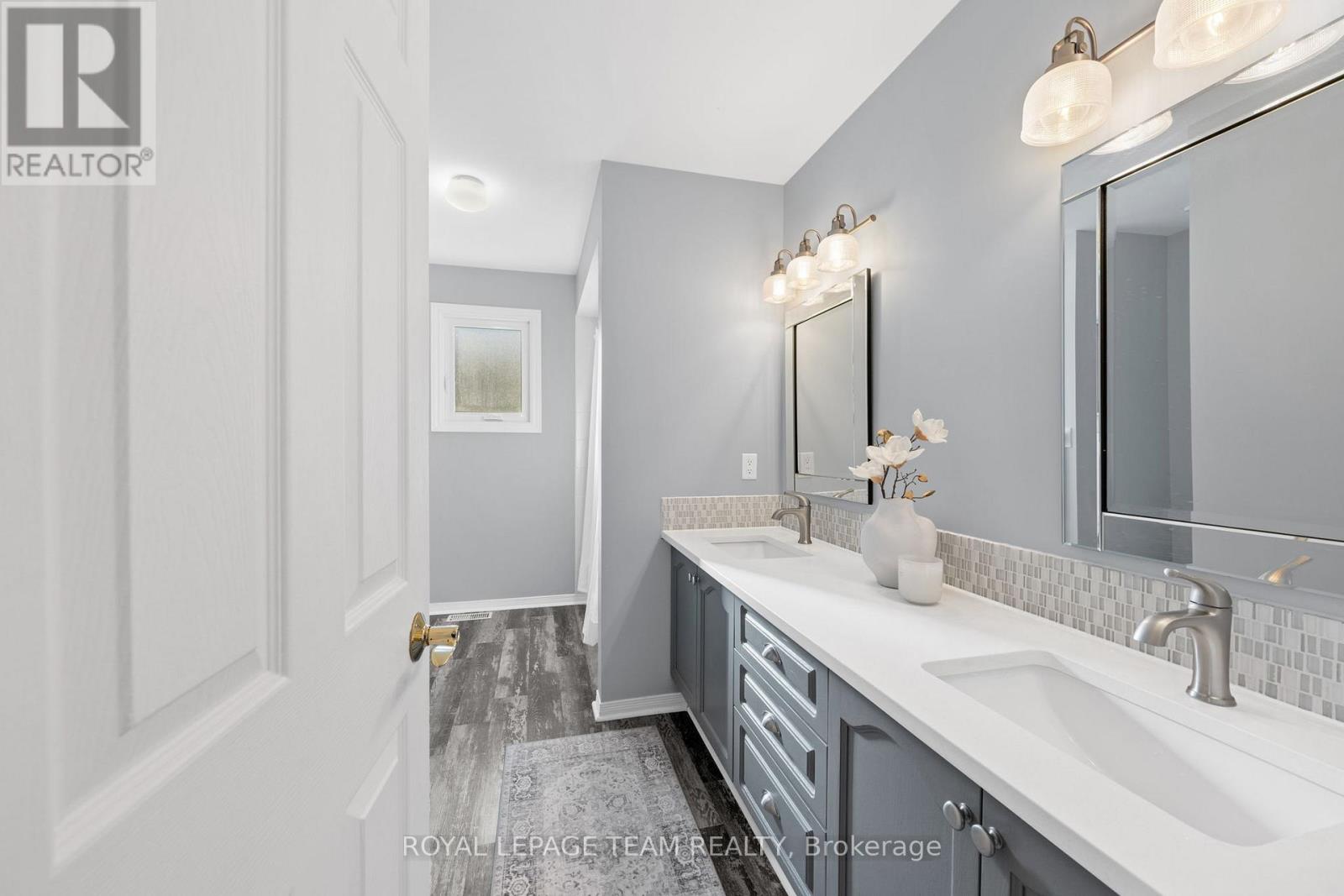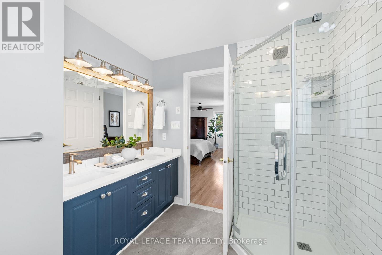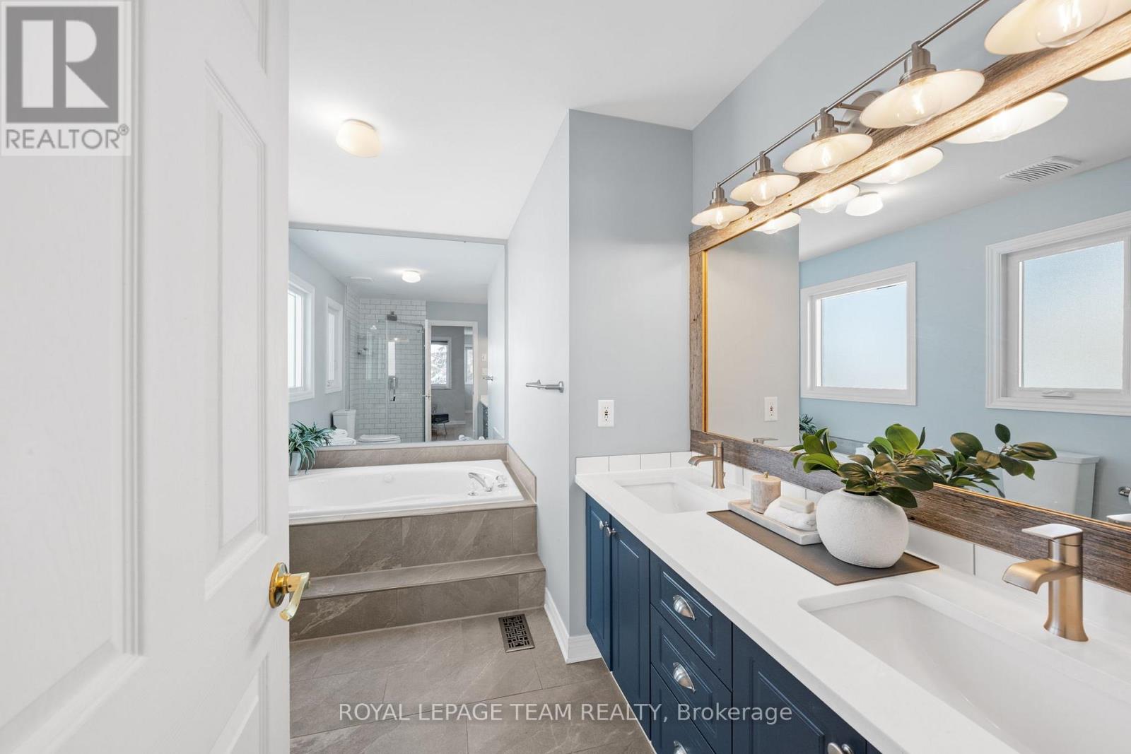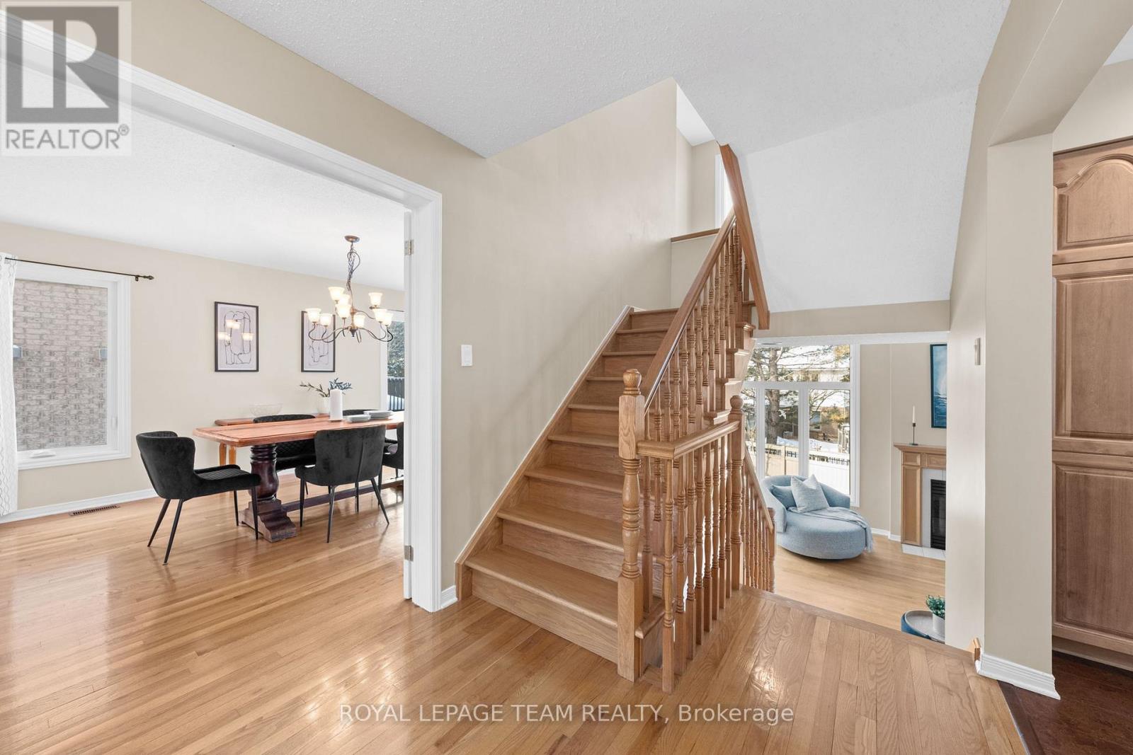 Open House on Sun March 8, 2-4 PM. Located in the heart of Kanata Lakes, this all-brick Holitzner built walkout home offers approx. 3,790 sq. ft. of finished living space in a quiet, family-friendly neighbourhood close to top schools, amenities, Kanata Tech Park, and National Defence HQ. An interlock walkway leads to a beautiful front entry, opening into a bright 2-storey foyer. The living room with wood-burning FP provides a welcoming space to entertain, while double doors lead to a spacious formal dining room overlooking the backyard. The updated kitchen (2021) features cork floors, quartz counters and island, SS appliances including a GE fridge (2025), Bosch dishwasher (2025), subway tile backsplash, abundant cabinetry and pantry storage, plus a bright breakfast area and coffee nook overlooking the family room. Also on the main level is an updated powder room with quartz counters and black fixtures, a stately office with built-ins, crown moulding and a gas fireplace, and a laundry room with cabinetry and LG washer and dryer (2021). The impressive 2-storey family room features soaring ceilings, wood-burning FP and sliding doors that lead to the deck. Upstairs, the expansive primary suite includes a WIC and spa-inspired ensuite w/ double sinks, quartz counters, jetted tub and separate shower. A full bath with double vanity and tub/shower combo serves this level, along with 3 additional bdrms, one featuring wainscoting and new carpet (2022). Finished walkout LL offers a rec room with built-ins and heated floors, theatre room, storage areas, 5th bdrm, and full bath w/heated floors, perfect for an in-law or guest suite. Backyard oasis is an entertainer's dream featuring beautiful landscaping, heated inground saltwater pool, deck with underneath storage, 2nd deck ideal for a hot tub or patio furniture, and a fully fenced yard. Windows and doors updated 2018/2019. Solar panels installed 2025. A must-see home in Kanata Lakes! 24 Hours Irrevocable on all offers preferred. (id:44758)