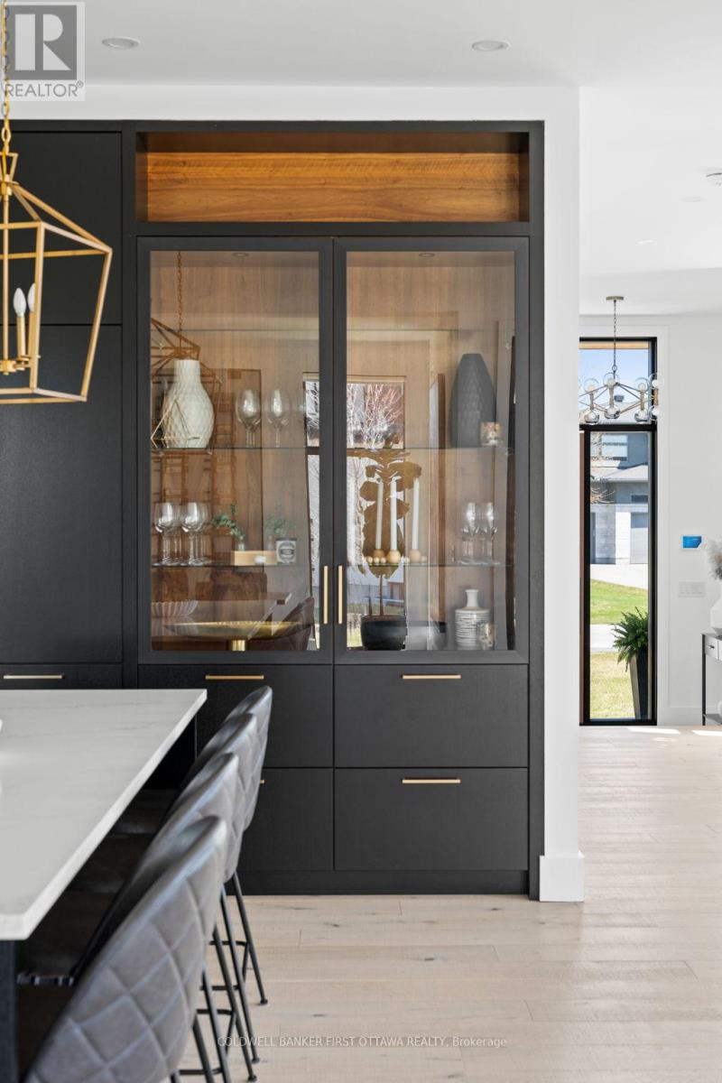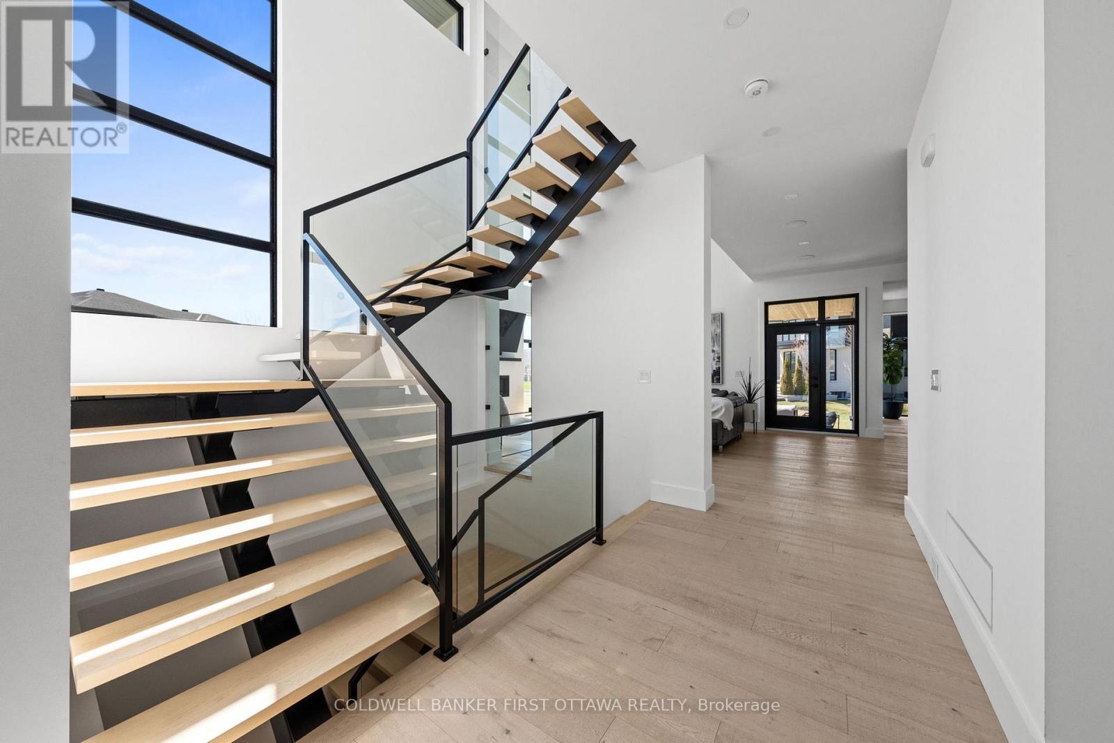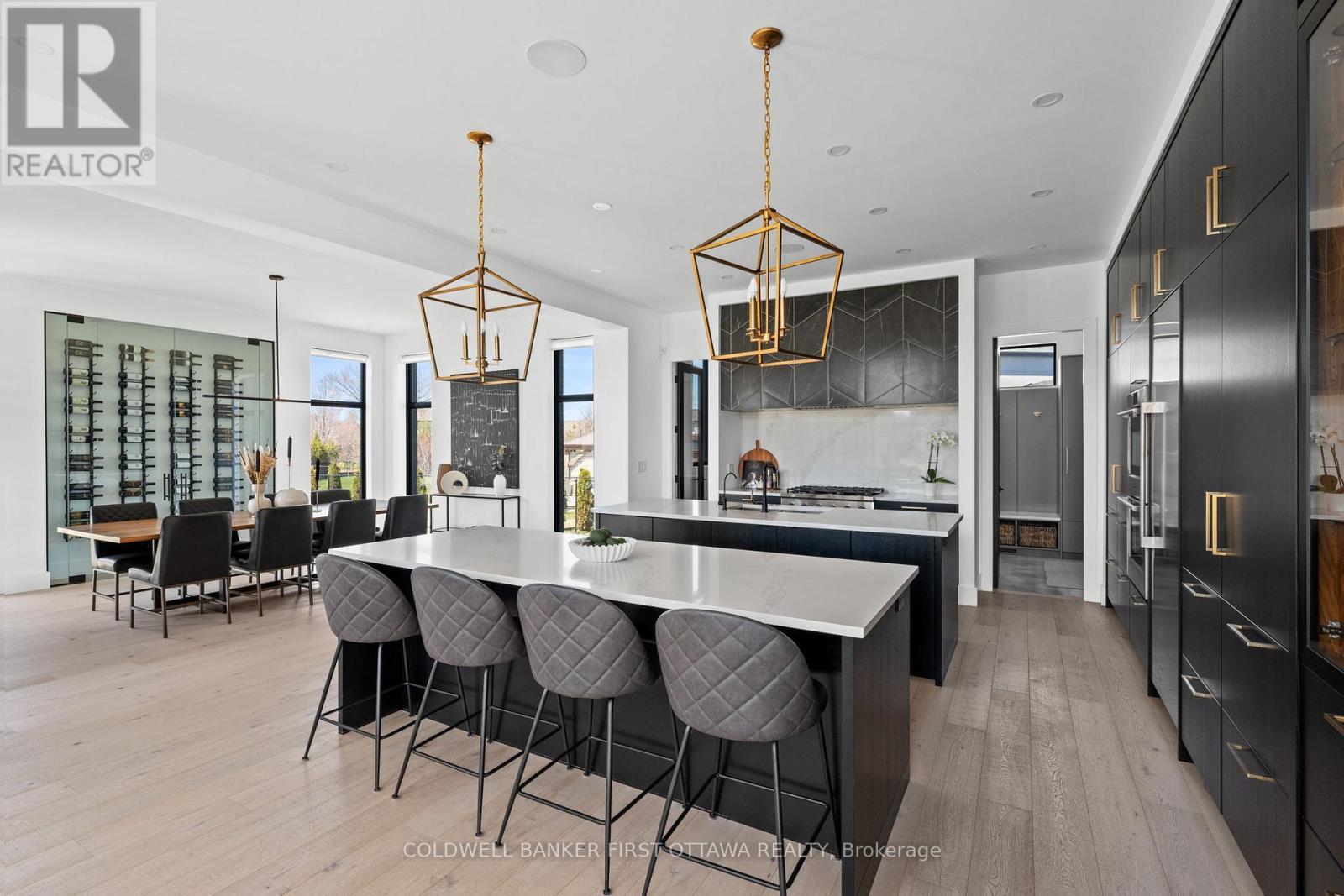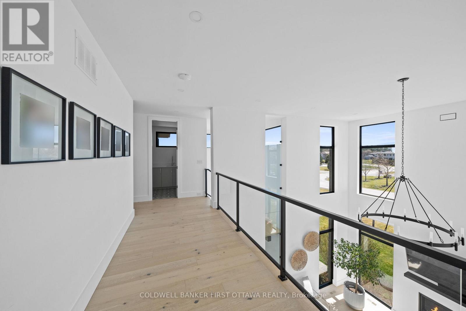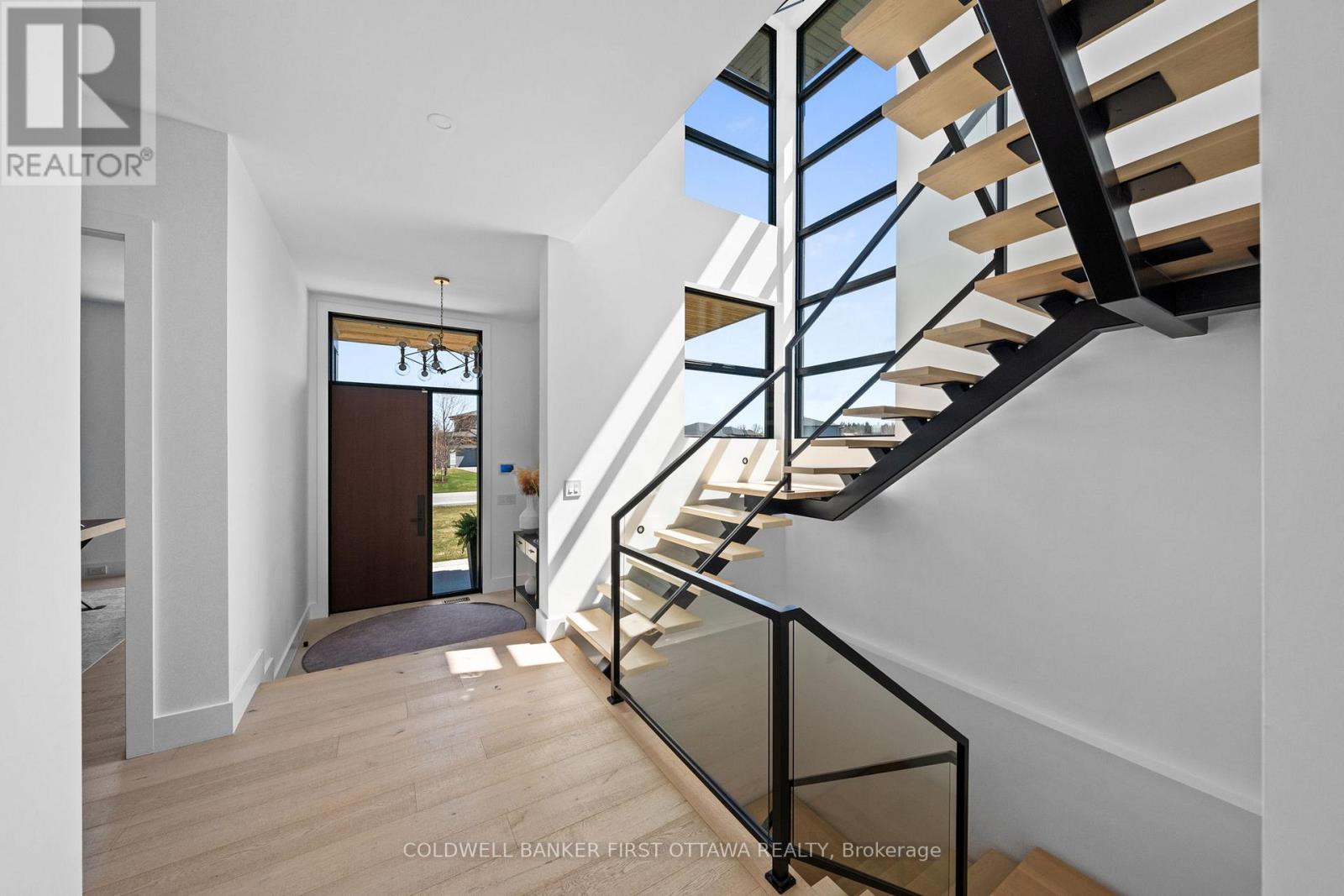 Welcome to 'The Monarch' on McManus, a custom-built residence curated by award-winning O'Keefe-Fiorenza Design Group & completed in 2021 by Relm Construction. Offers 5,600+ sq.ft. of living space w/ premium craftsmanship & attention to detail t/o. Step into a grand foyer & the sun-filled main lvl feat. 10 ft ceilings, wide-plank white oak hardwood & a striking open-concept layout anchored by the 20ft vaulted great room w/ gas fireplace, floating mantle & statement chandelier. The chef & entertaining-inspired kitchen is impressive, showcasing dual oversized islands (one is a true serving island seating for SIX) w/ quartz counters, custom cabinetry, high-end Fisher & Paykel appliances incl. a 6-burner gas range, double wall ovens & integrated fridge, along w/ a serving pantry, wine display & dining area w/ expansive windows. A private front office (or add'l bedroom) w/ floor-to-ceiling windows, a designer 3pc bath, WIC front closet, fully outfitted mudroom w/ custom storage & inside access to the oversized 3 car garage w/ 14ft ceilings. On the 2nd lvl, 9ft ceilings continue alongside a glass-railed private hallway overlooking the great room. The primary suite offers a private & luxe retreat w/ floor-to-ceiling windows, massive custom WIC w/ built-in shelving & drawers, & a luxurious 6pc ensuite feat. a standalone soaker tub, dual rain shower, floating vanity & radiant in-floor heating. Add'l bedrooms are ample in size, incl. a Cheater Ensuite & a separate Bed w/ Ensuite/Guest Suite, while a dedicated laundry suite & linen closet adds convenience. The finished LL expands the living space w/ a rec room feat. fireplace, home health & wellness rm, add'l bed, spa 3pc bath & inside access to garage. Exterior highlights incl. a striking stone/brick/stucco façade & extended driveway. This is a rare opportunity to own a thoughtfully & beautifully designed, turnkey home in a highly sought-after community of Manotick Estates. Love where you live with 'The Monarch'! (id:44758)