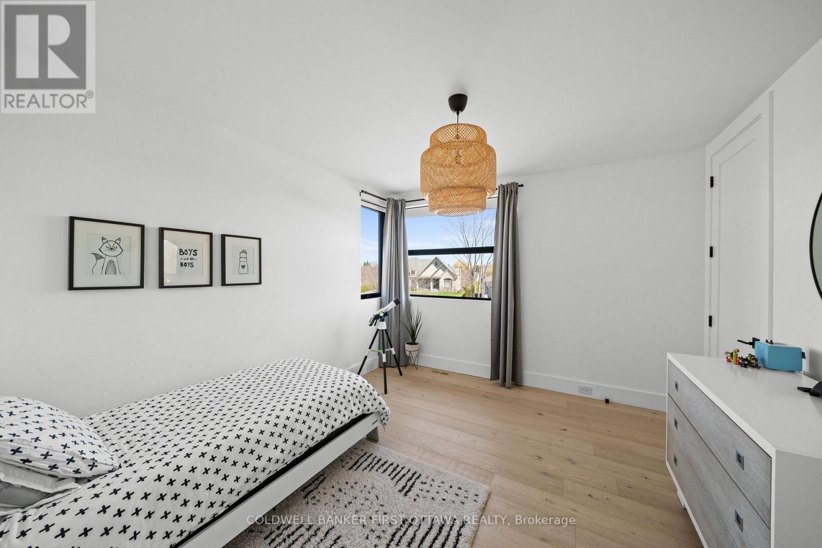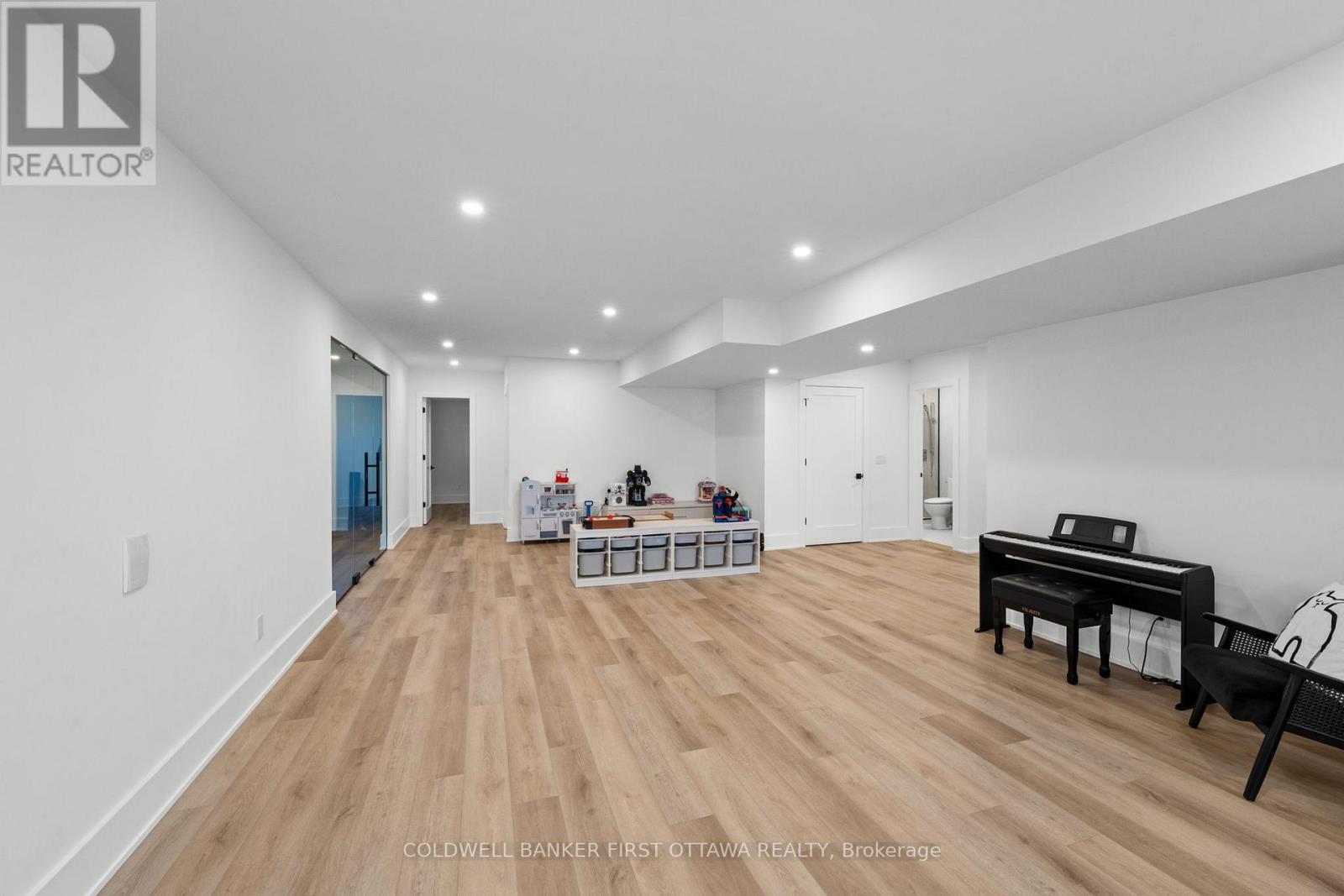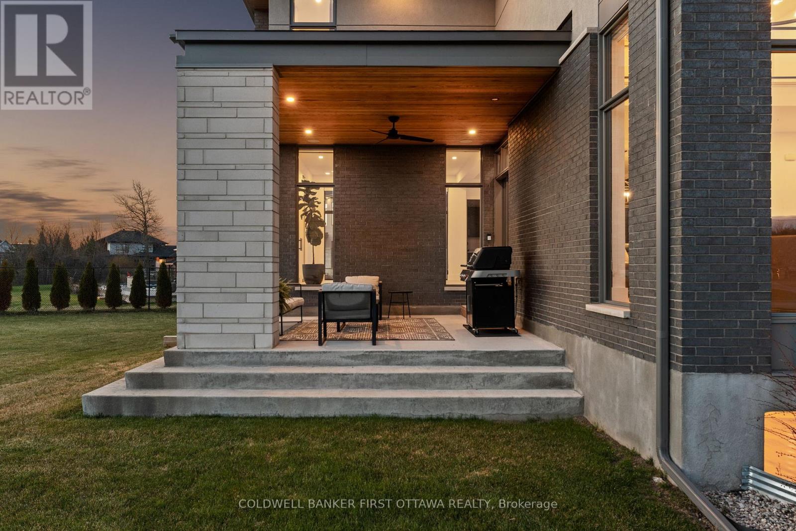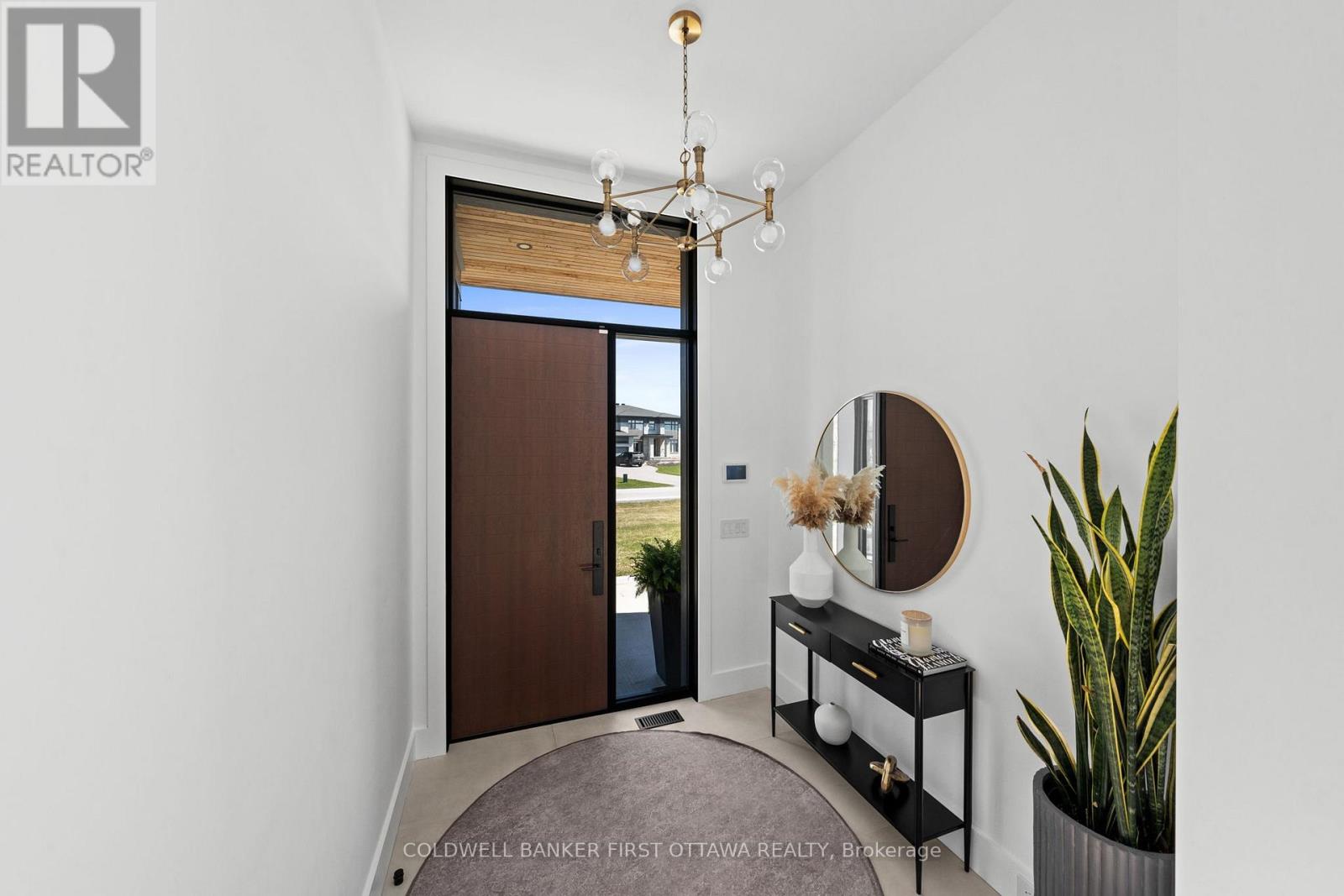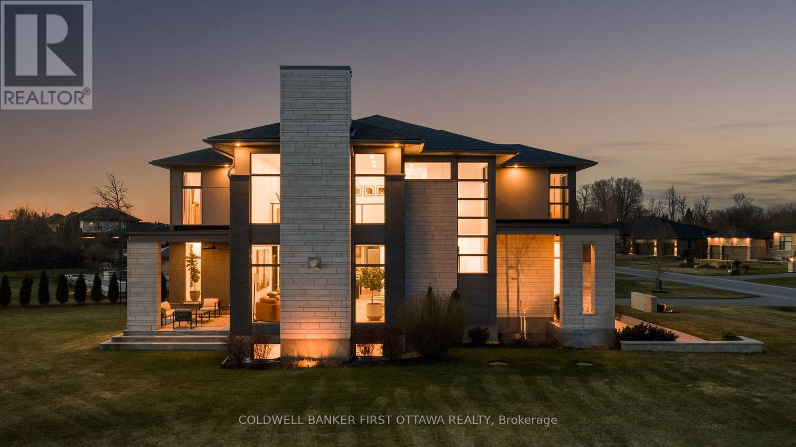 Welcome to 'The Monarch' on McManus, a custom-built residence curated by award-winning O'Keefe-Fiorenza Design Group & completed in 2021 by Relm Construction. Offers 5,600+ sq.ft. of living space w/ premium craftsmanship & attention to detail t/o. Step into a grand foyer & the sun-filled main lvl feat. 10 ft ceilings, wide-plank white oak hardwood & a striking open-concept layout anchored by the 20ft vaulted great room w/ gas fireplace, floating mantle & statement chandelier. The chef & entertaining-inspired kitchen is impressive, showcasing dual oversized islands (one is a true serving island seating for SIX) w/ quartz counters, custom cabinetry, high-end Fisher & Paykel appliances incl. a 6-burner gas range, double wall ovens & integrated fridge, along w/ a serving pantry, wine display & dining area w/ expansive windows. A private front office (or add'l bedroom) w/ floor-to-ceiling windows, a designer 3pc bath, WIC front closet, fully outfitted mudroom w/ custom storage & inside access to the oversized 3 car garage w/ 14ft ceilings. On the 2nd lvl, 9ft ceilings continue alongside a glass-railed private hallway overlooking the great room. The primary suite offers a private & luxe retreat w/ floor-to-ceiling windows, massive custom WIC w/ built-in shelving & drawers, & a luxurious 6pc ensuite feat. a standalone soaker tub, dual rain shower, floating vanity & radiant in-floor heating. Add'l bedrooms are ample in size, incl. a Cheater Ensuite & a separate Bed w/ Ensuite/Guest Suite, while a dedicated laundry suite & linen closet adds convenience. The finished LL expands the living space w/ a rec room feat. fireplace, home health & wellness rm, add'l bed, spa 3pc bath & inside access to garage. Exterior highlights incl. a striking stone/brick/stucco façade & extended driveway. This is a rare opportunity to own a thoughtfully & beautifully designed, turnkey home in a highly sought-after community of Manotick Estates. Love where you live with 'The Monarch'! (id:44758)