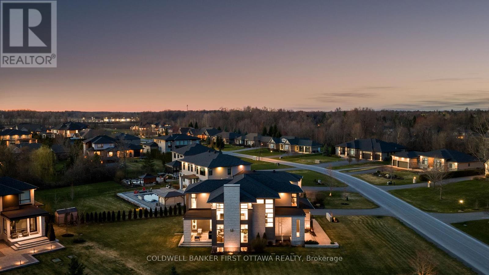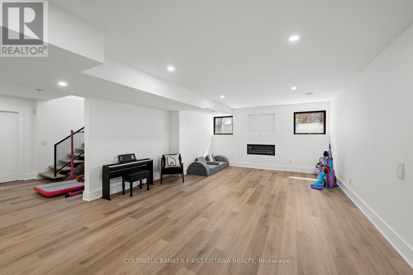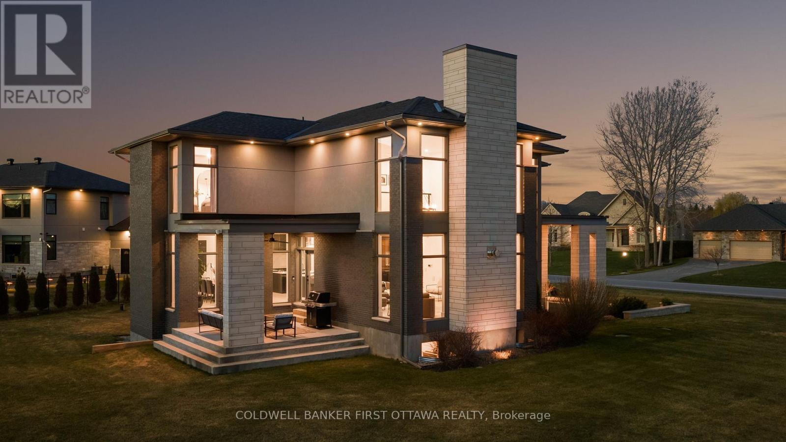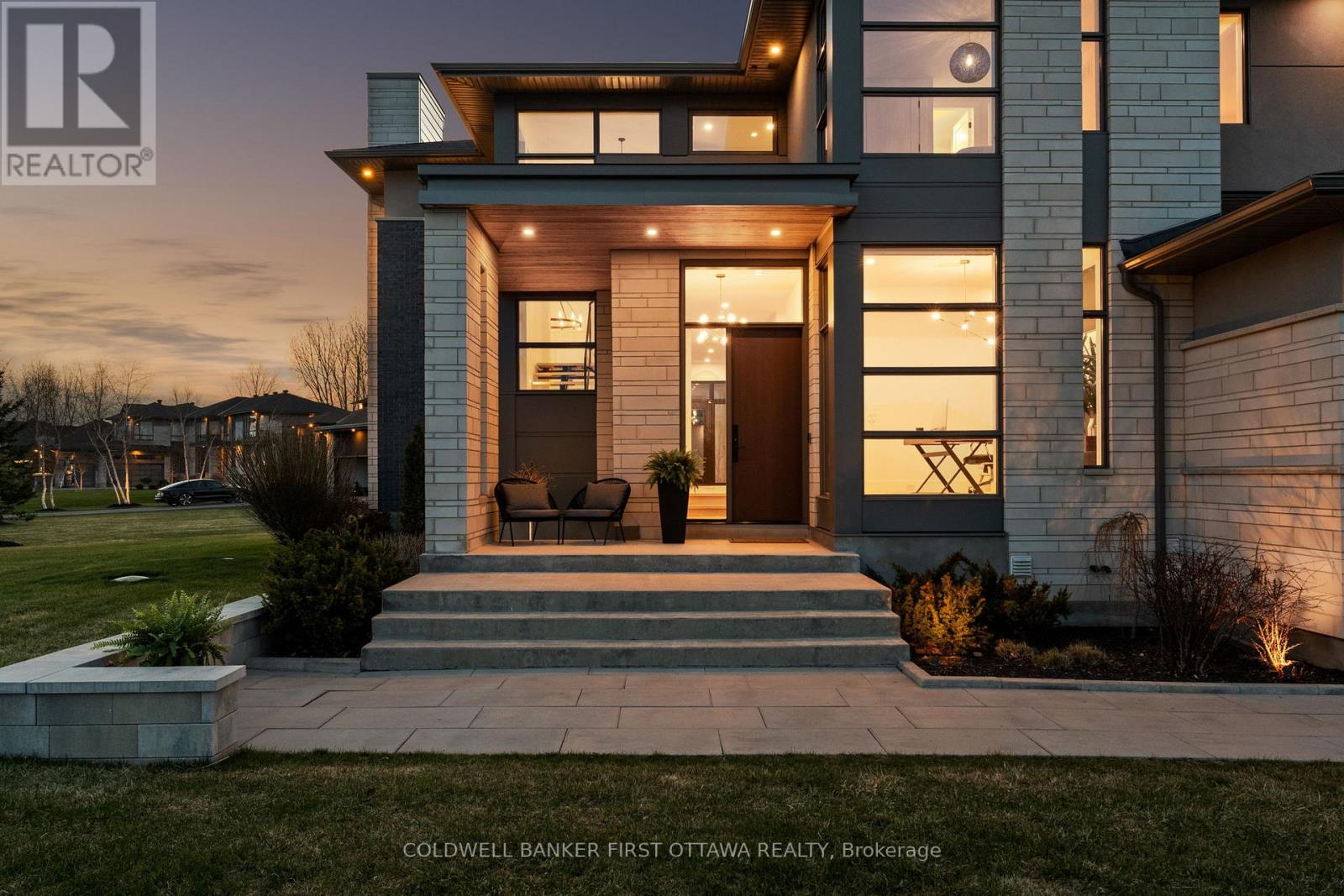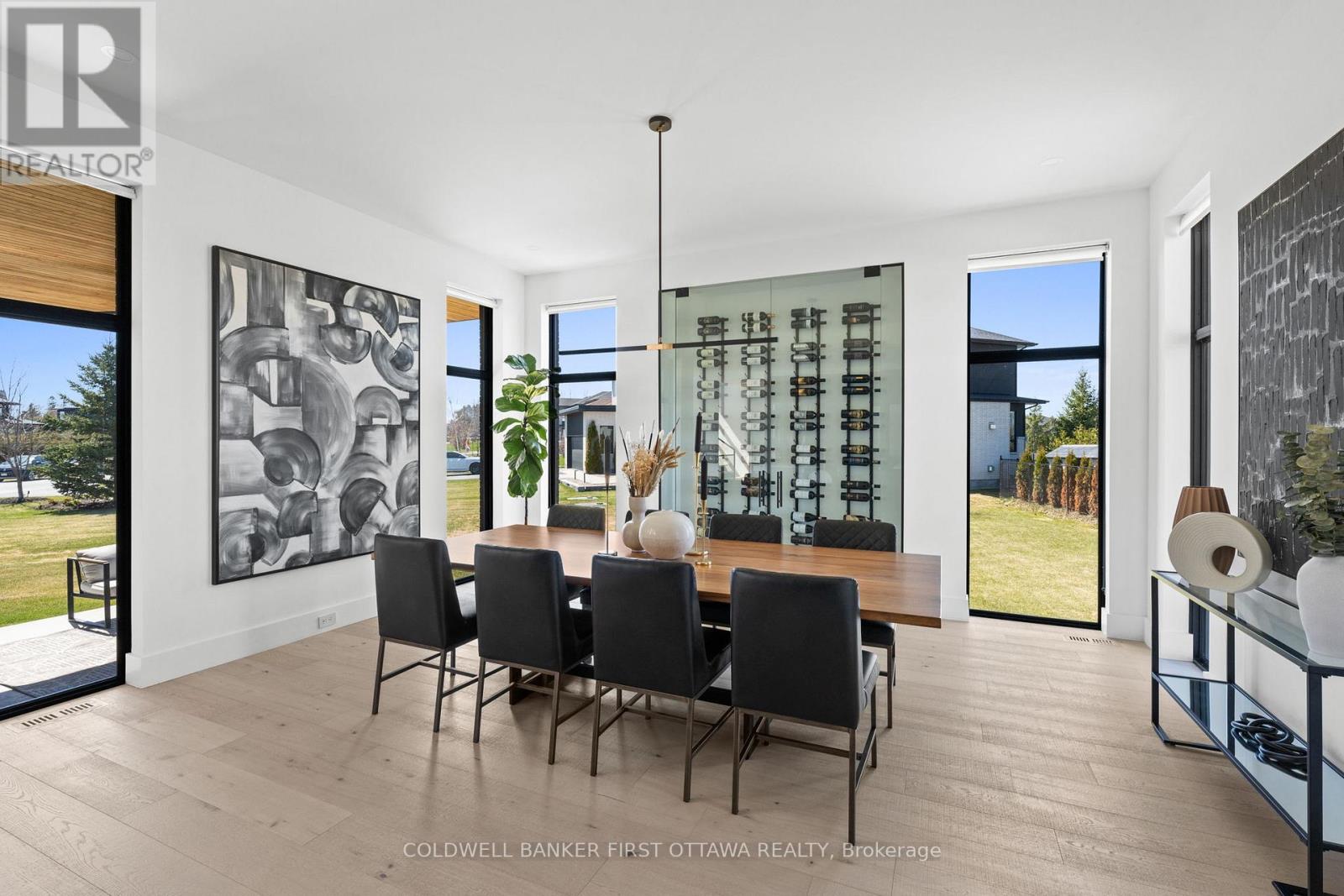 Welcome to 'The Monarch' on McManus, a custom-built residence curated by award-winning O'Keefe-Fiorenza Design Group & completed in 2021 by Relm Construction. Offers 5,600+ sq.ft. of living space w/ premium craftsmanship & attention to detail t/o. Step into a grand foyer & the sun-filled main lvl feat. 10 ft ceilings, wide-plank white oak hardwood & a striking open-concept layout anchored by the 20ft vaulted great room w/ gas fireplace, floating mantle & statement chandelier. The chef & entertaining-inspired kitchen is impressive, showcasing dual oversized islands (one is a true serving island seating for SIX) w/ quartz counters, custom cabinetry, high-end Fisher & Paykel appliances incl. a 6-burner gas range, double wall ovens & integrated fridge, along w/ a serving pantry, wine display & dining area w/ expansive windows. A private front office (or add'l bedroom) w/ floor-to-ceiling windows, a designer 3pc bath, WIC front closet, fully outfitted mudroom w/ custom storage & inside access to the oversized 3 car garage w/ 14ft ceilings. On the 2nd lvl, 9ft ceilings continue alongside a glass-railed private hallway overlooking the great room. The primary suite offers a private & luxe retreat w/ floor-to-ceiling windows, massive custom WIC w/ built-in shelving & drawers, & a luxurious 6pc ensuite feat. a standalone soaker tub, dual rain shower, floating vanity & radiant in-floor heating. Add'l bedrooms are ample in size, incl. a Cheater Ensuite & a separate Bed w/ Ensuite/Guest Suite, while a dedicated laundry suite & linen closet adds convenience. The finished LL expands the living space w/ a rec room feat. fireplace, home health & wellness rm, add'l bed, spa 3pc bath & inside access to garage. Exterior highlights incl. a striking stone/brick/stucco façade & extended driveway. This is a rare opportunity to own a thoughtfully & beautifully designed, turnkey home in a highly sought-after community of Manotick Estates. Love where you live with 'The Monarch'! (id:44758)