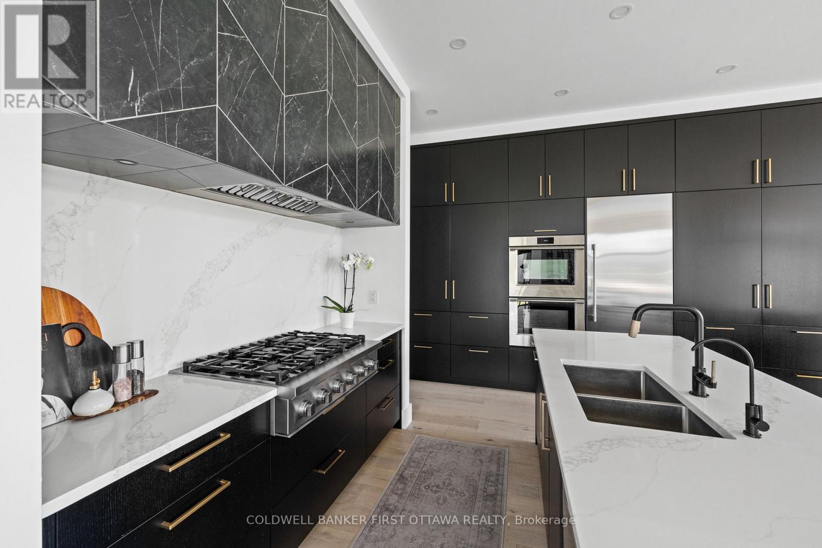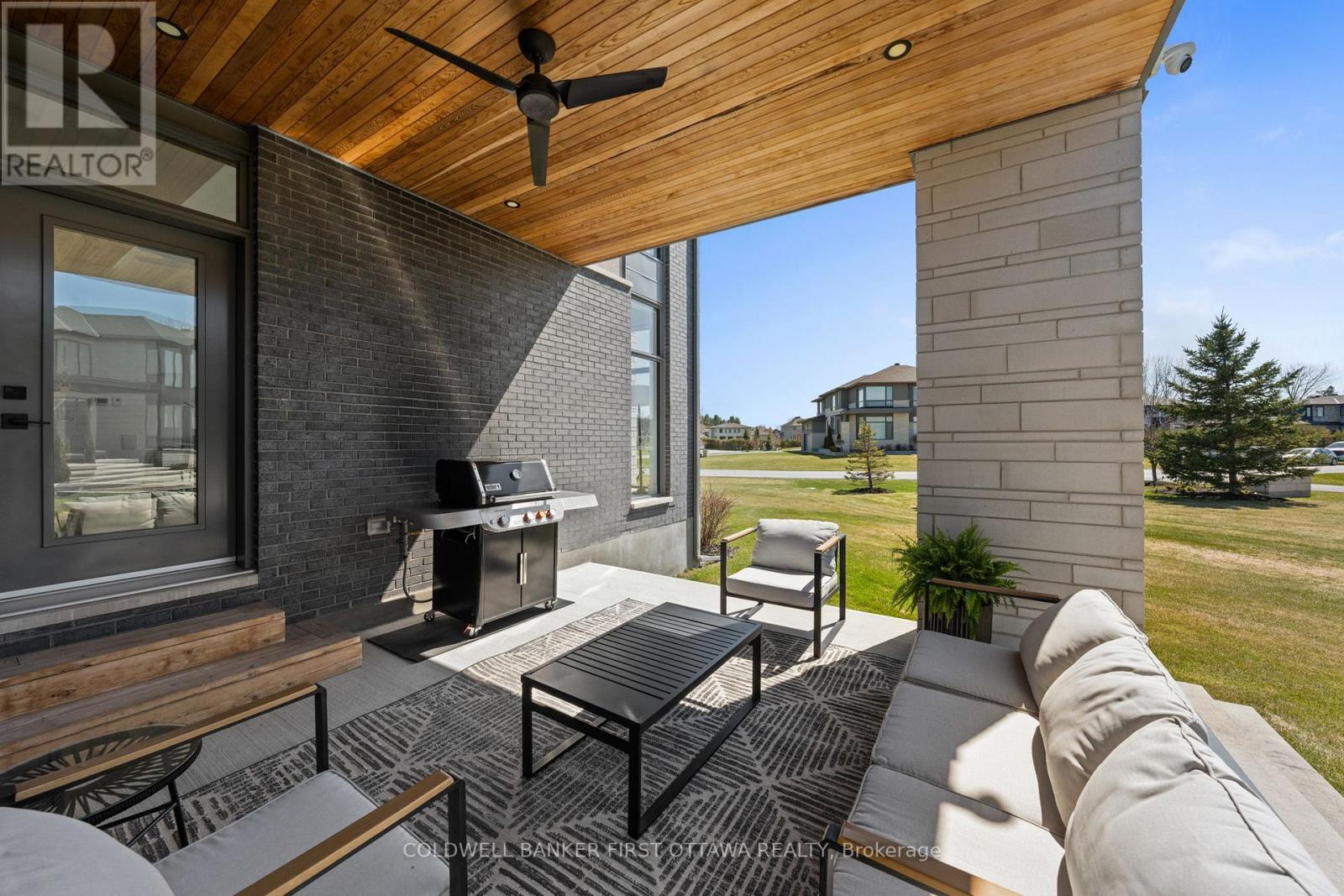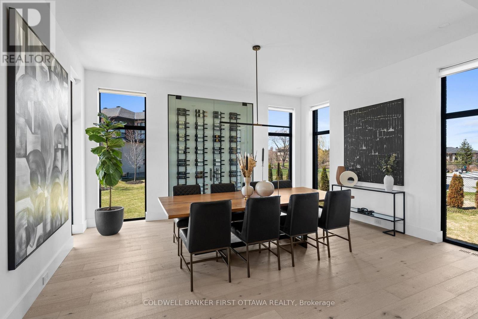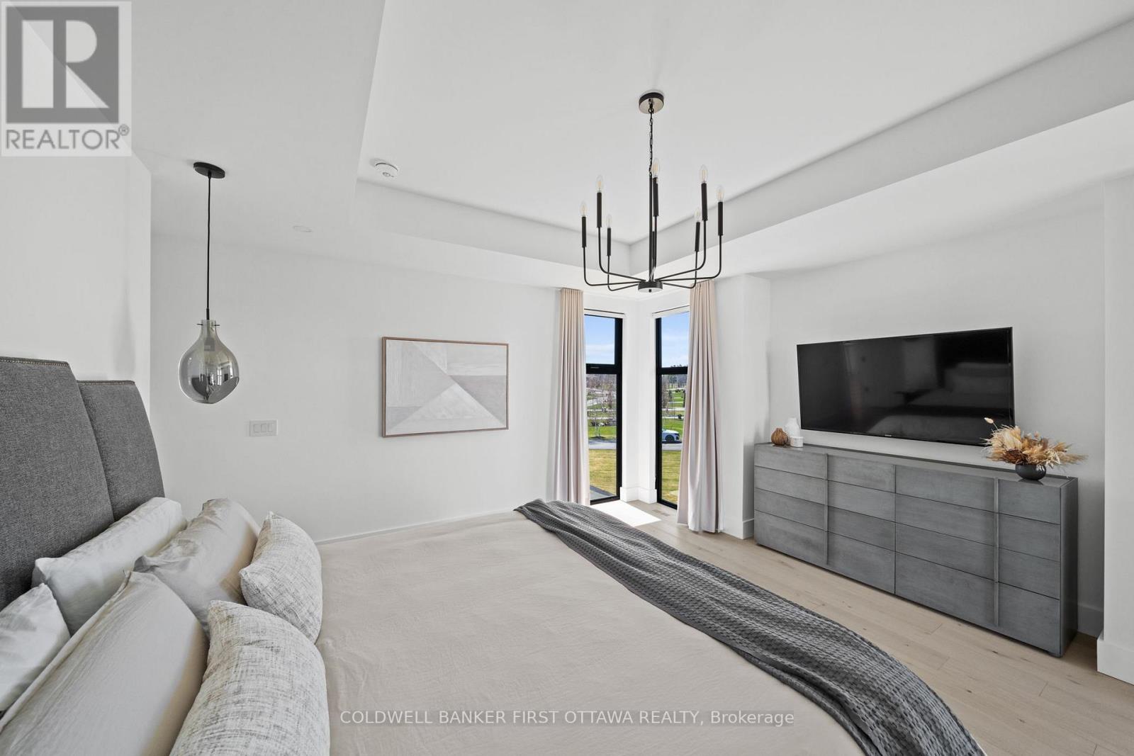 Welcome to 'The Monarch' on McManus, a custom-built residence curated by award-winning O'Keefe-Fiorenza Design Group & completed in 2021 by Relm Construction. Offers 5,600+ sq.ft. of living space w/ premium craftsmanship & attention to detail t/o. Step into a grand foyer & the sun-filled main lvl feat. 10 ft ceilings, wide-plank white oak hardwood & a striking open-concept layout anchored by the 20ft vaulted great room w/ gas fireplace, floating mantle & statement chandelier. The chef & entertaining-inspired kitchen is impressive, showcasing dual oversized islands (one is a true serving island seating for SIX) w/ quartz counters, custom cabinetry, high-end Fisher & Paykel appliances incl. a 6-burner gas range, double wall ovens & integrated fridge, along w/ a serving pantry, wine display & dining area w/ expansive windows. A private front office (or add'l bedroom) w/ floor-to-ceiling windows, a designer 3pc bath, WIC front closet, fully outfitted mudroom w/ custom storage & inside access to the oversized 3 car garage w/ 14ft ceilings. On the 2nd lvl, 9ft ceilings continue alongside a glass-railed private hallway overlooking the great room. The primary suite offers a private & luxe retreat w/ floor-to-ceiling windows, massive custom WIC w/ built-in shelving & drawers, & a luxurious 6pc ensuite feat. a standalone soaker tub, dual rain shower, floating vanity & radiant in-floor heating. Add'l bedrooms are ample in size, incl. a Cheater Ensuite & a separate Bed w/ Ensuite/Guest Suite, while a dedicated laundry suite & linen closet adds convenience. The finished LL expands the living space w/ a rec room feat. fireplace, home health & wellness rm, add'l bed, spa 3pc bath & inside access to garage. Exterior highlights incl. a striking stone/brick/stucco façade & extended driveway. This is a rare opportunity to own a thoughtfully & beautifully designed, turnkey home in a highly sought-after community of Manotick Estates. Love where you live with 'The Monarch'! (id:44758)
