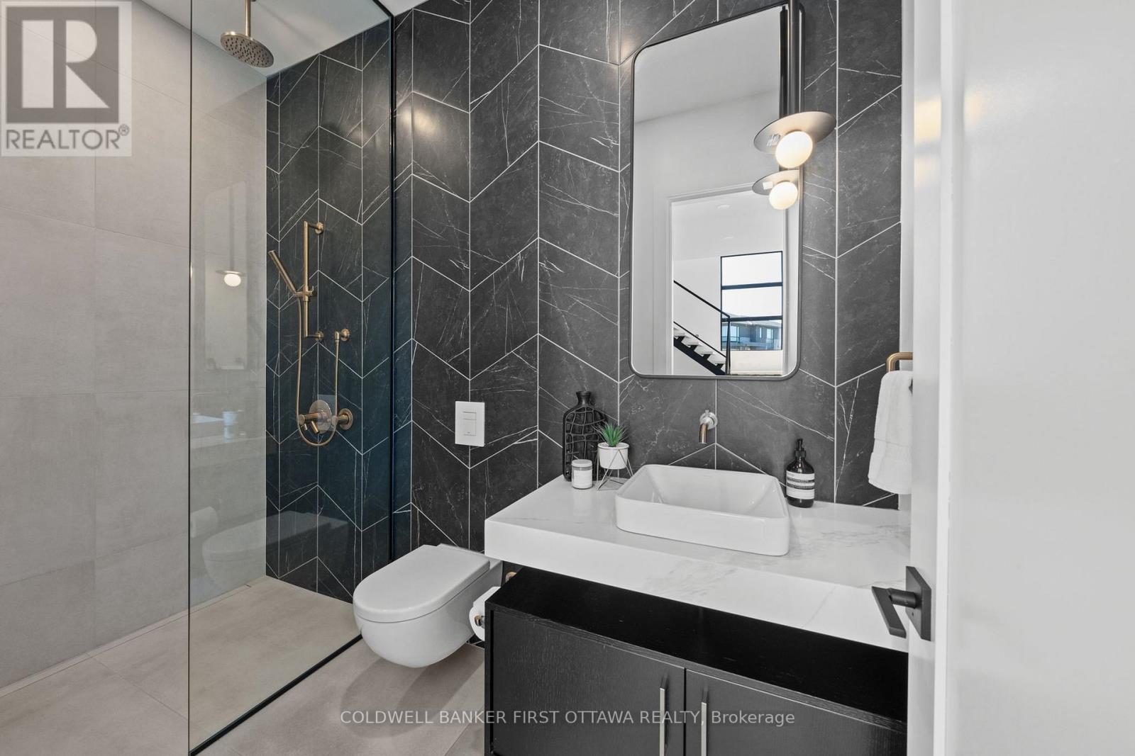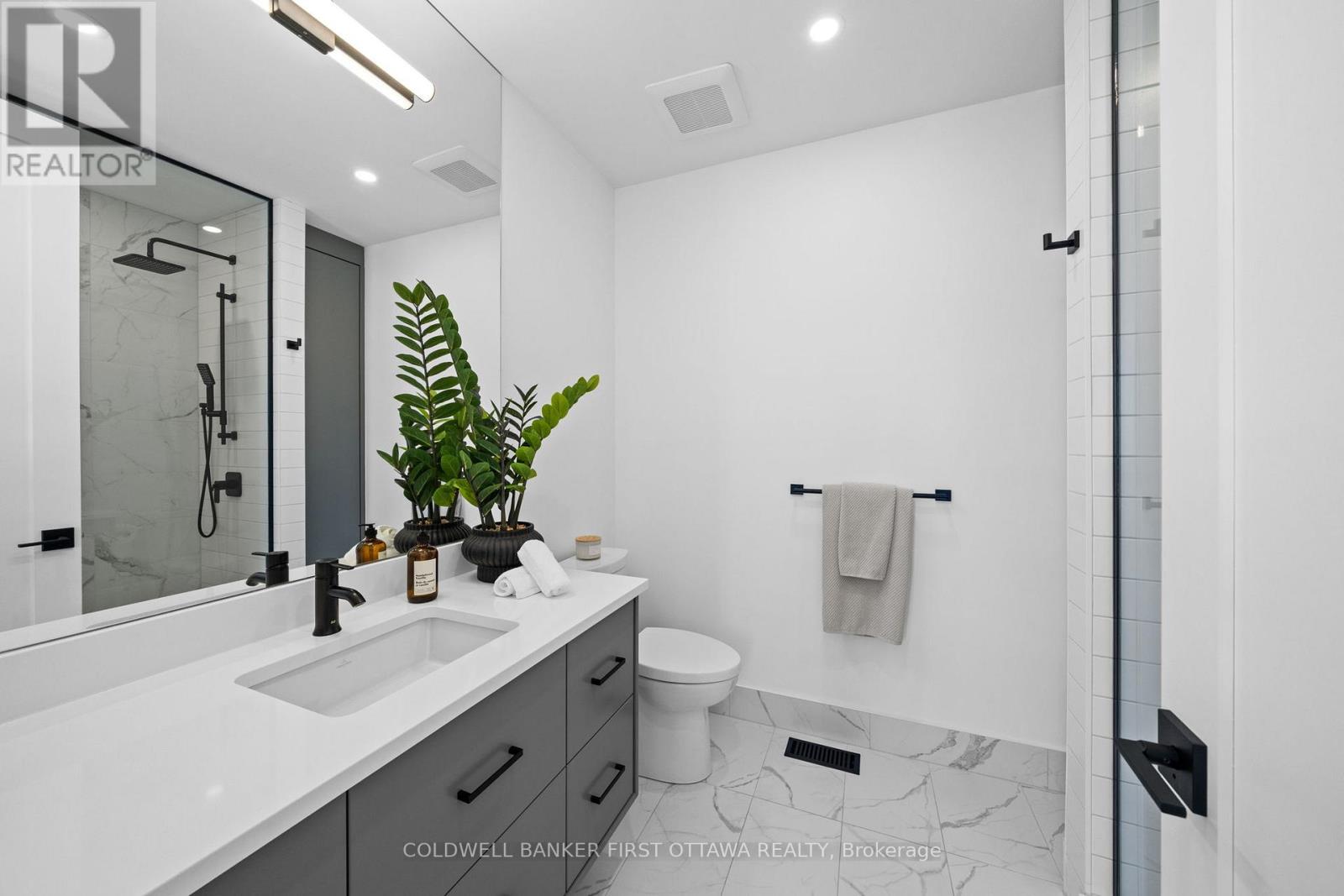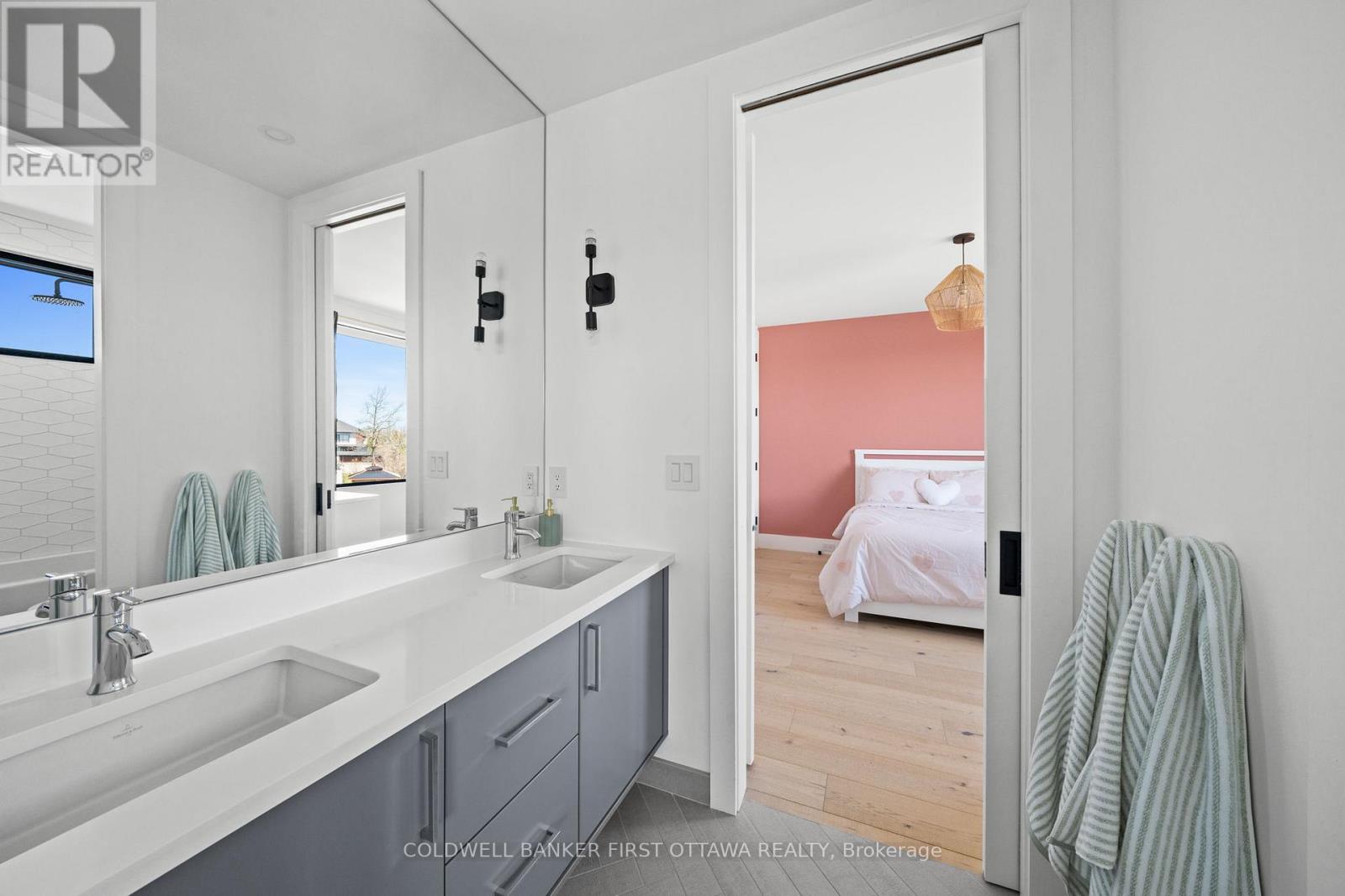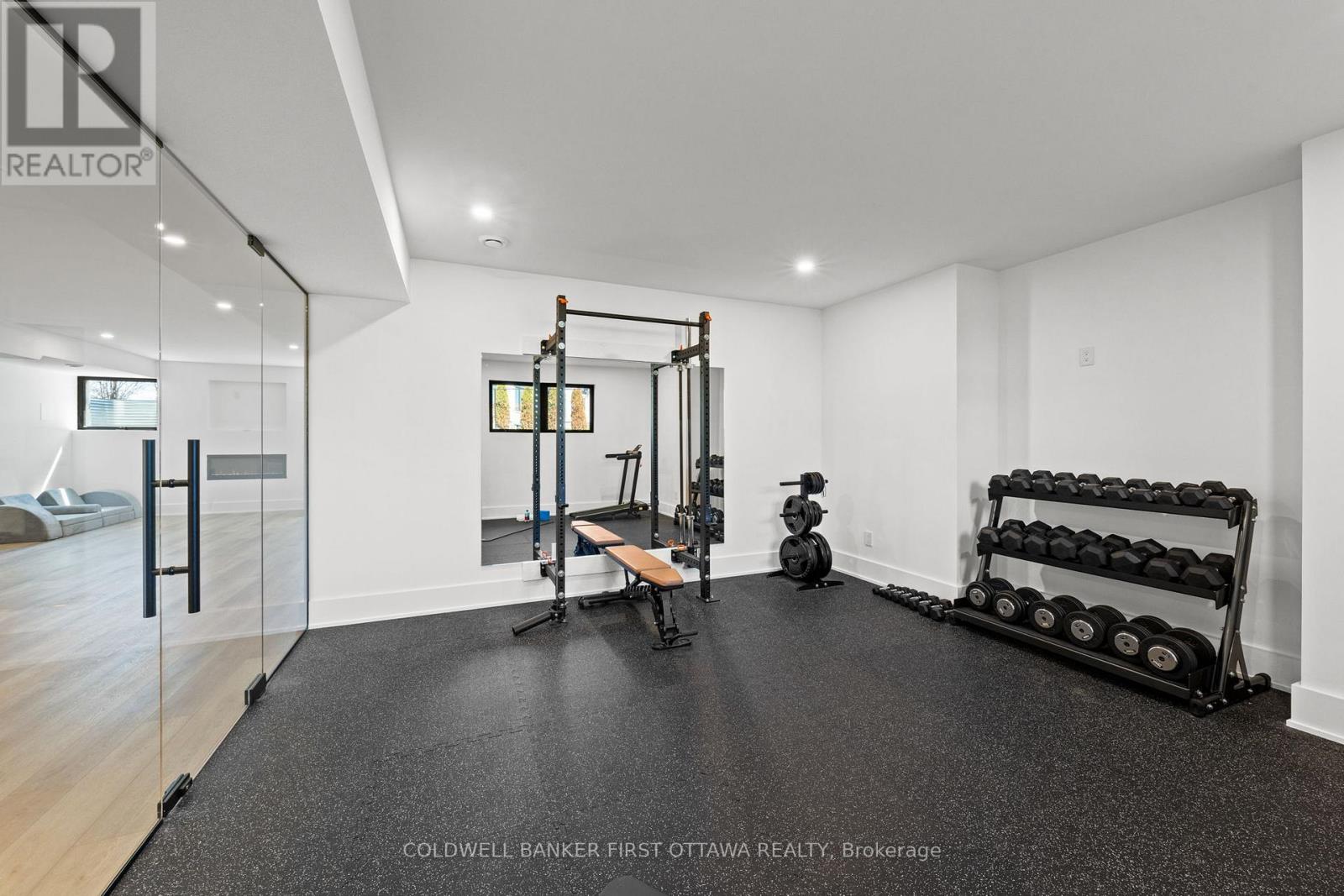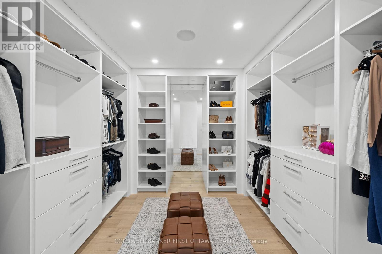 Welcome to 'The Monarch' on McManus, a custom-built residence curated by award-winning O'Keefe-Fiorenza Design Group & completed in 2021 by Relm Construction. Offers 5,600+ sq.ft. of living space w/ premium craftsmanship & attention to detail t/o. Step into a grand foyer & the sun-filled main lvl feat. 10 ft ceilings, wide-plank white oak hardwood & a striking open-concept layout anchored by the 20ft vaulted great room w/ gas fireplace, floating mantle & statement chandelier. The chef & entertaining-inspired kitchen is impressive, showcasing dual oversized islands (one is a true serving island seating for SIX) w/ quartz counters, custom cabinetry, high-end Fisher & Paykel appliances incl. a 6-burner gas range, double wall ovens & integrated fridge, along w/ a serving pantry, wine display & dining area w/ expansive windows. A private front office (or add'l bedroom) w/ floor-to-ceiling windows, a designer 3pc bath, WIC front closet, fully outfitted mudroom w/ custom storage & inside access to the oversized 3 car garage w/ 14ft ceilings. On the 2nd lvl, 9ft ceilings continue alongside a glass-railed private hallway overlooking the great room. The primary suite offers a private & luxe retreat w/ floor-to-ceiling windows, massive custom WIC w/ built-in shelving & drawers, & a luxurious 6pc ensuite feat. a standalone soaker tub, dual rain shower, floating vanity & radiant in-floor heating. Add'l bedrooms are ample in size, incl. a Cheater Ensuite & a separate Bed w/ Ensuite/Guest Suite, while a dedicated laundry suite & linen closet adds convenience. The finished LL expands the living space w/ a rec room feat. fireplace, home health & wellness rm, add'l bed, spa 3pc bath & inside access to garage. Exterior highlights incl. a striking stone/brick/stucco façade & extended driveway. This is a rare opportunity to own a thoughtfully & beautifully designed, turnkey home in a highly sought-after community of Manotick Estates. Love where you live with 'The Monarch'! (id:44758)