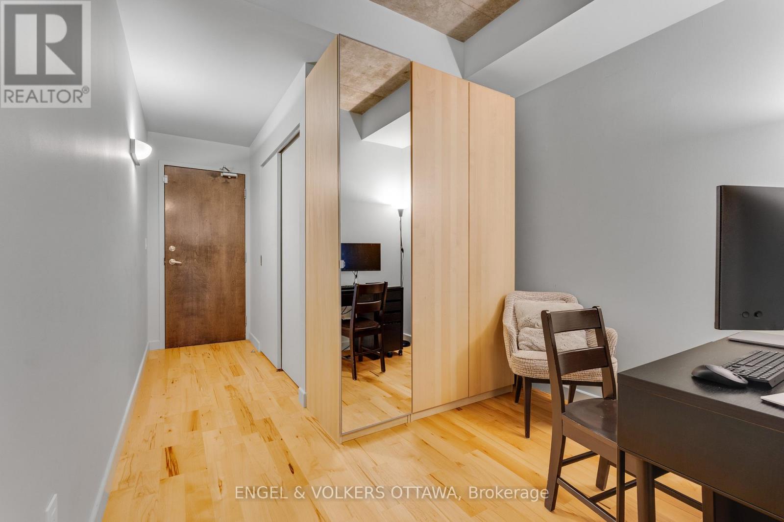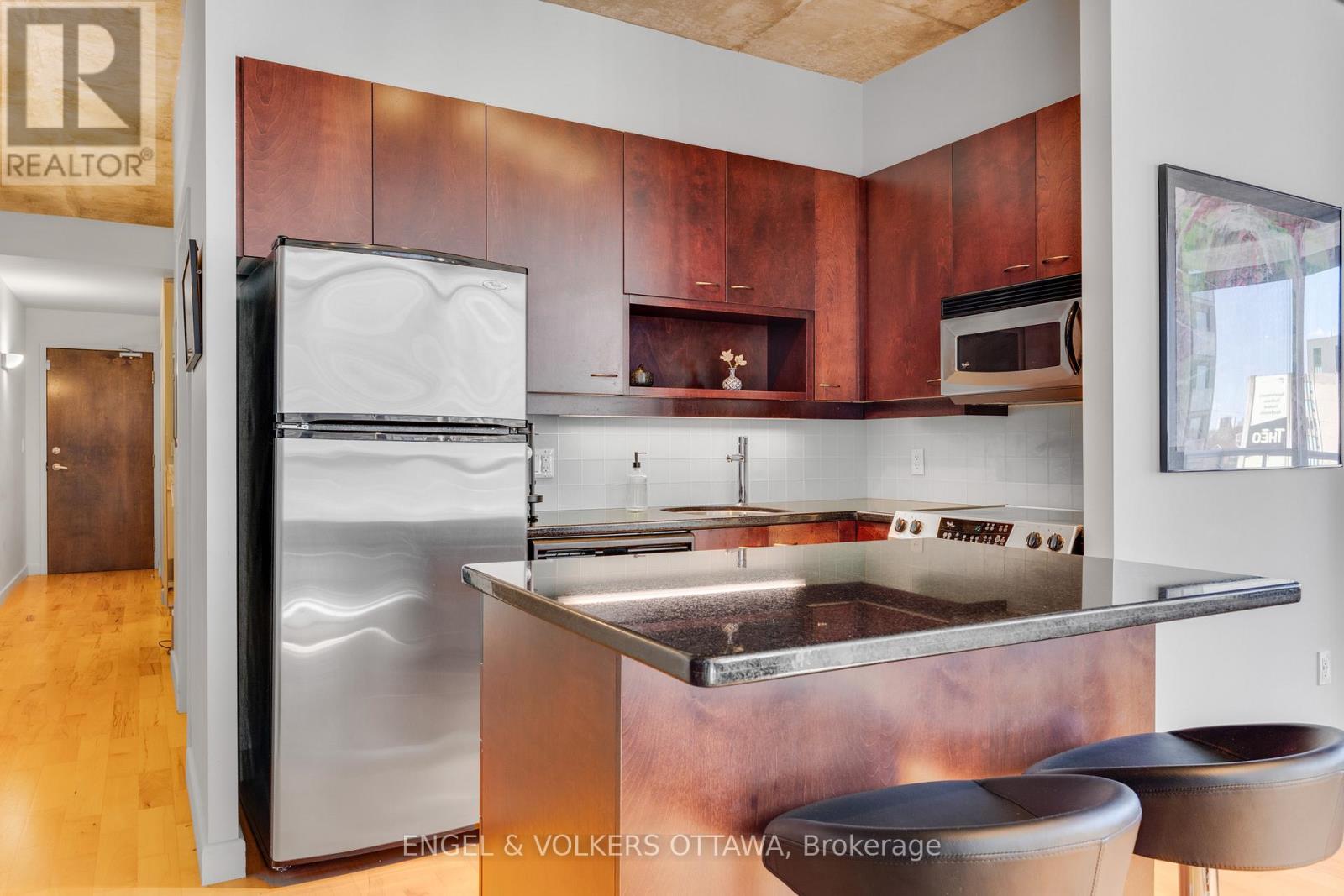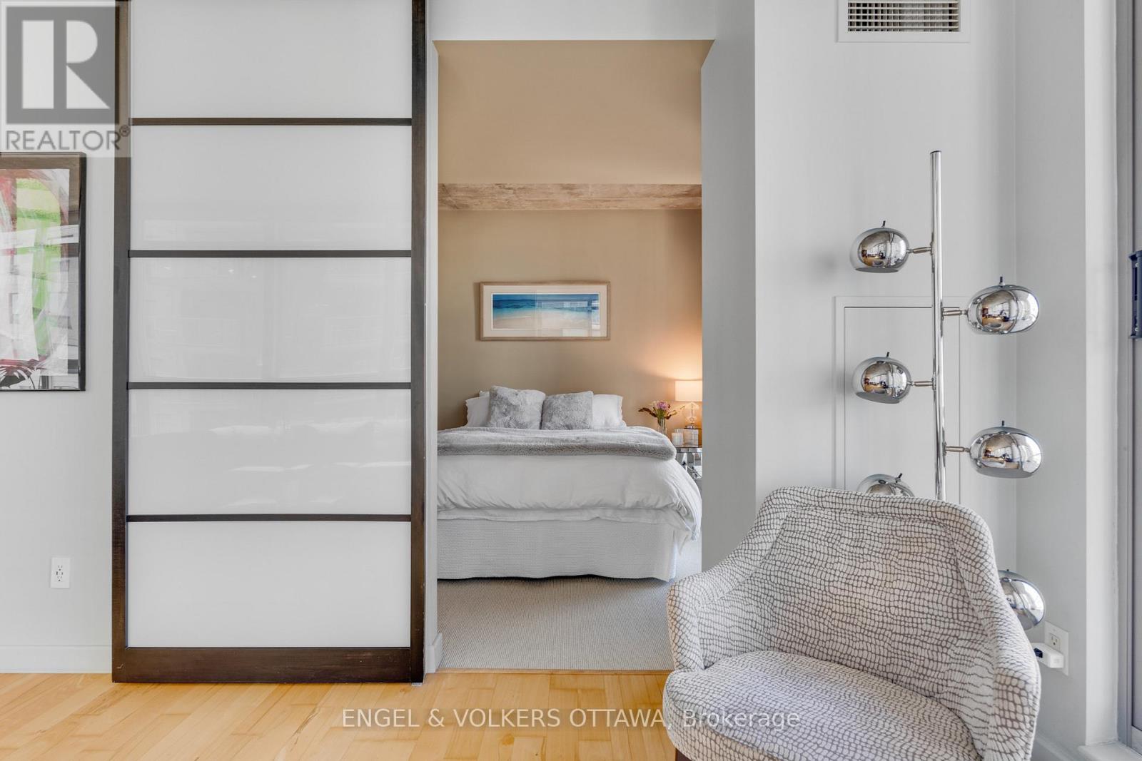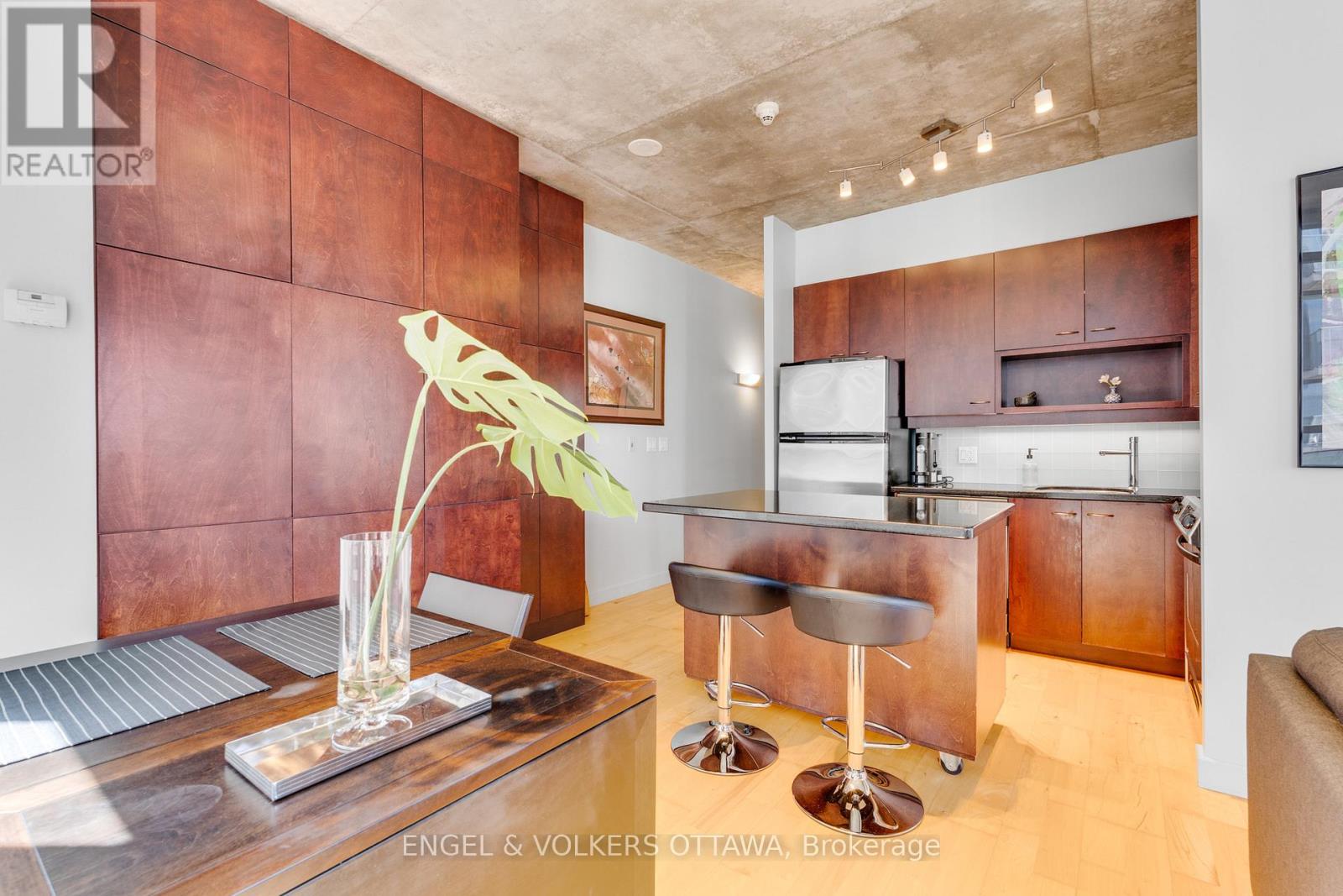 Welcome to this bright and spacious 1 bedroom + den condo at 179 George Street in the heart of Lower Town/Sandy Hill. Offering approximately 800-899 sq. ft., this south-east facing suite features an open balcony, in-suite laundry, and a comfortable layout ideal for both city living and working from home. Set in a well-managed brick and concrete building, this unit includes 1 owned underground parking space and a locker for added convenience. Monthly maintenance covers heat, hydro, and air conditioning, and the condo is being sold with flexible possession. Enjoy a prime downtown Ottawa location steps from the ByWard Market, shops, restaurants, transit, and everyday amenities. The suite includes appliances plus roller shades, making it move-in ready. (id:44758)
