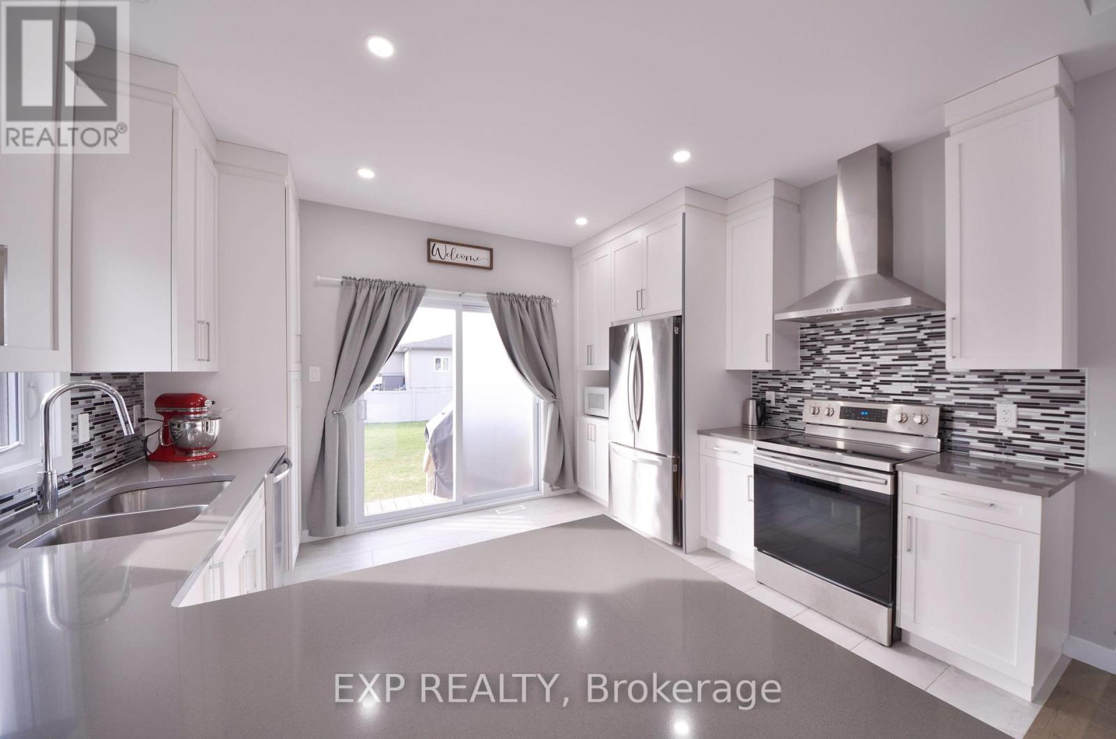 Contemporary style meets country charm in this beautifully upgraded Onyx III model, ideally located in one of Embrun's most sought-after communities, only a 25 minute drive from Ottawa. This spacious 5-bedroom, 3-bathroom detached home sits on a premium lot and offers a massive, fully fenced backyard-perfect for families, entertaining, and outdoor living. With over $100,000 in upgrades, this property delivers both comfort and sophistication. The standout feature is the fully finished in-law suite in the basement, complete with its own kitchen, dining area, bathroom, and bedroom-ideal for multigenerational living or extended guests. Additional upgrades include maintenance-free PVC fencing, permanent exterior LED accent lighting, premium kitchen and bathroom finishes such as quartz countertops and so much more. The fourth upstairs bedroom is currently set up as a nursery, offering flexibility for your family's needs. This home blends modern design with warm, inviting character-an exceptional opportunity in a thriving community. ** This is a linked property.** (id:44758)