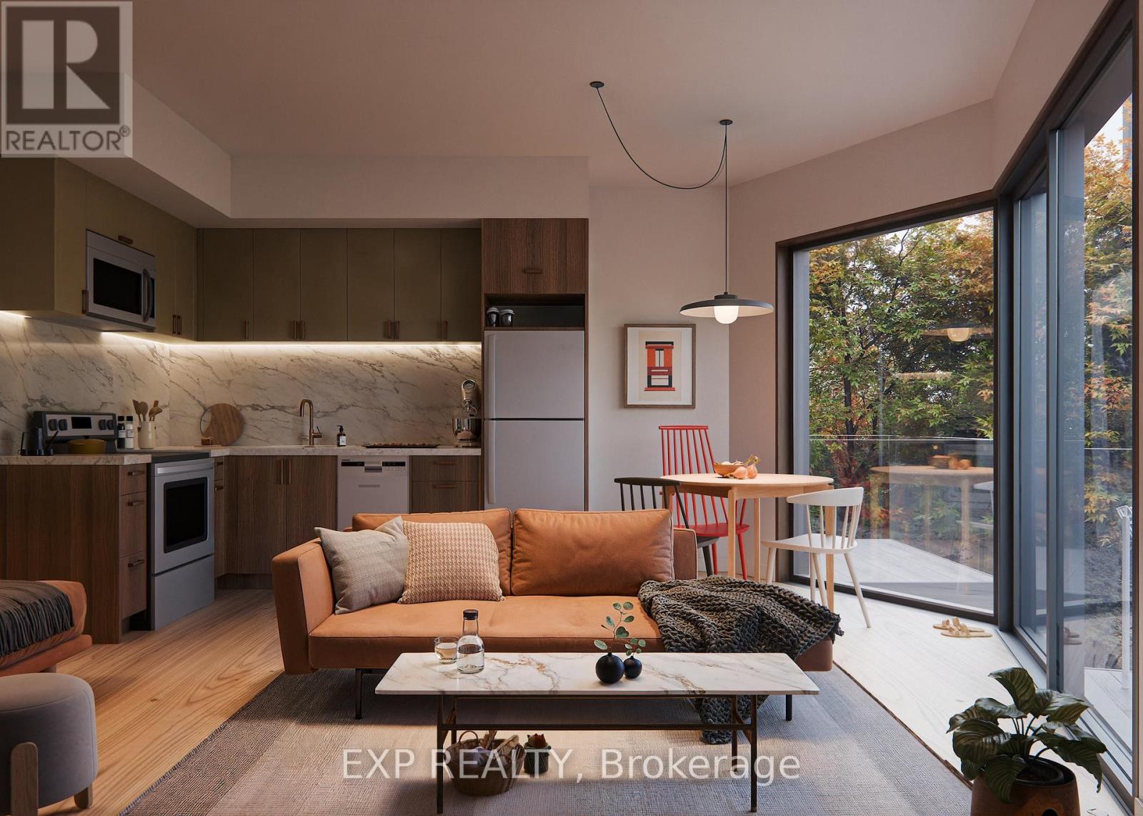 A home at Calabogie Peaks is more than a place-it's an invitation to live fully, every day. Set within a thoughtfully designed four-season community, this is where connection, comfort, and adventure come together with ease. Surrounded by thousands of acres of protected Crown Land and just one hour west of Ottawa, this rare destination places you at the heart of Ontario's premier ski mountain and along the shores of Calabogie Lake. Here, your backyard becomes a gateway to experience, exploration, and everyday joy. At Juniper Ridge, each townhome is designed in harmony with its surroundings. Inspired by the natural contours of the land, clean geometric forms and tiered architecture blend seamlessly into the mountain landscape. Indoor and outdoor living flow effortlessly, inviting you onto your private balcony to take in nature's rhythm from morning through evening. Inside, every detail is designed for ease and enjoyment. Open-concept living spaces create a bright, airy flow that naturally brings people together, while expansive windows fill your home with light. Carefully curated finishes-from 9-foot smooth ceilings to luxury vinyl plank flooring and quartz countertops-offer a refined, modern feel. A complete appliance package ensures everything is ready from day one, while an optional rental management program through Calabogie Peaks Hotel offers flexibility and convenience. Life here moves with the seasons. Winter brings the thrill of fresh snow and mountain air. Summer offers lakeside moments and sun-filled afternoons. This is where memories build over time, stories are shared, and each day invites something new. This is your place to live freely, reconnect deeply, and create a life defined by experience, connection, and meaning. Holgate Model - Lower, 1 bedroom + Flex. Red Oak Building. (id:44758)