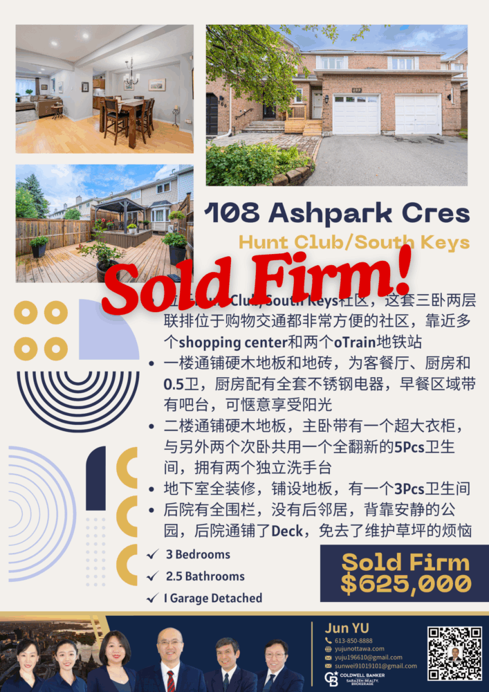 【于军地产 成交捷报】在这个房子第二个showing的时候,我们成功抓住稍纵即逝的机会[GoForIt],热烈祝贺108 Ashpark Cres单车库3卧2.5卫联排Sold Firm![Party]我们专业团队凭借多年市场经验和娴熟谈判技巧,在交易中最大限度维护客户利益!期待顺利交房![ThumbsUp]